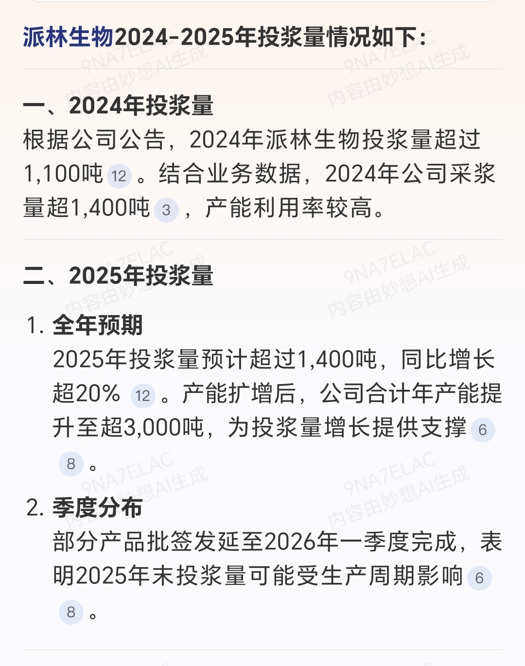 $派林生物(SZ000403)$ 2024年投浆量1100吨,2025年投浆量1400吨,第四季度批签爆发派斯菲科单季度批签100左右高毛利产品增加,2025年采浆1600吨,预计投浆1600吨