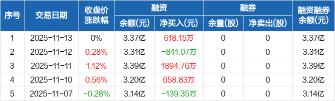 长虹华意:融资净买入618.15万元,融资余额3.37亿元(11-13)