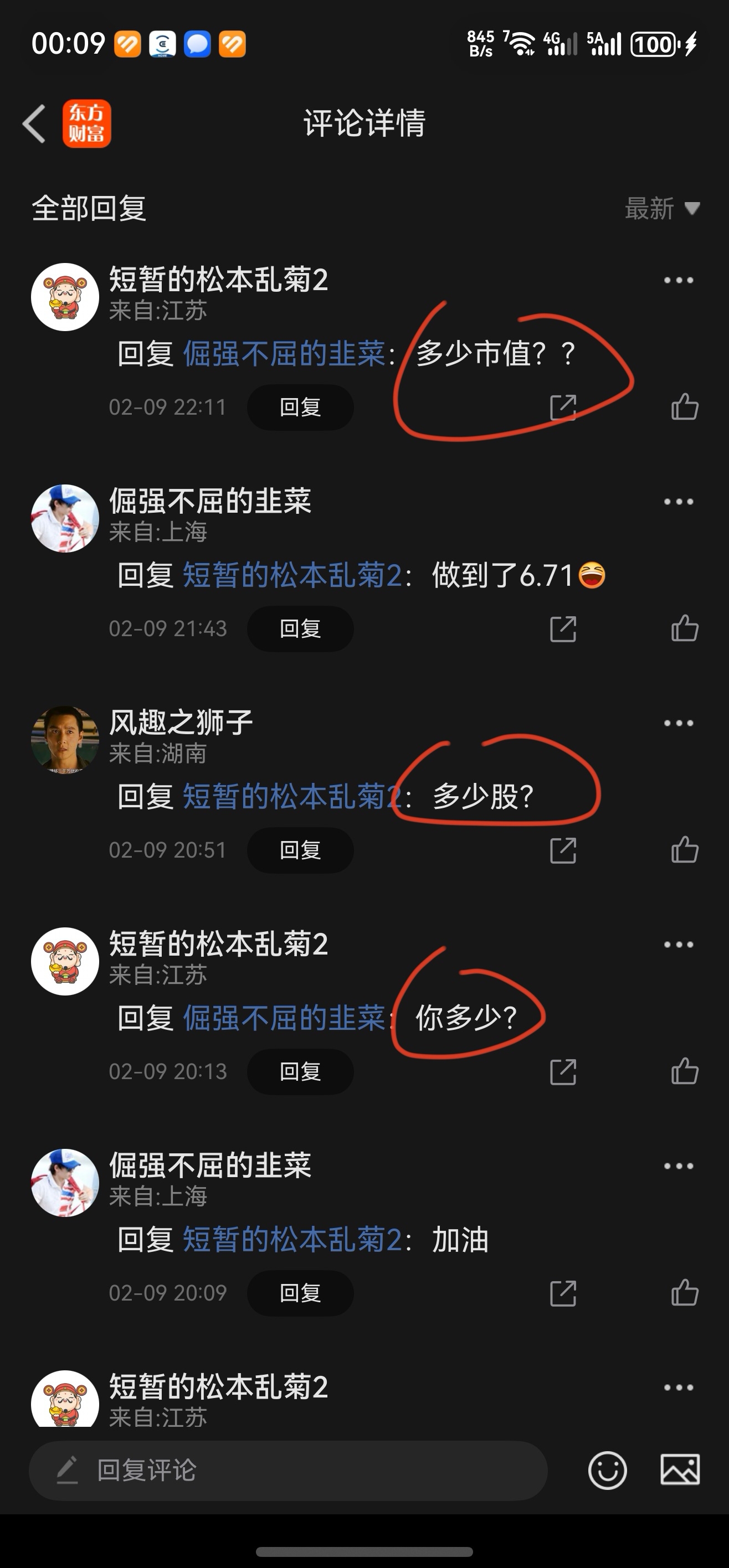 $长虹华意(SZ000404)$ 笑喜,吧里又有新乐子了。事情是这样的:那位“大忽悠”《短暂的松本乱菊2》照例又发张假图,吹嘘自己短线高手。接着另外两个忽悠也凑上来捧场(其实是想借机给自己贴贴金)。结果是狐狸遇上妖,一个比一个精。当几人互问“持有多少股”“市值多少”之后,竟齐齐哑火,再无下文。滑稽吧。