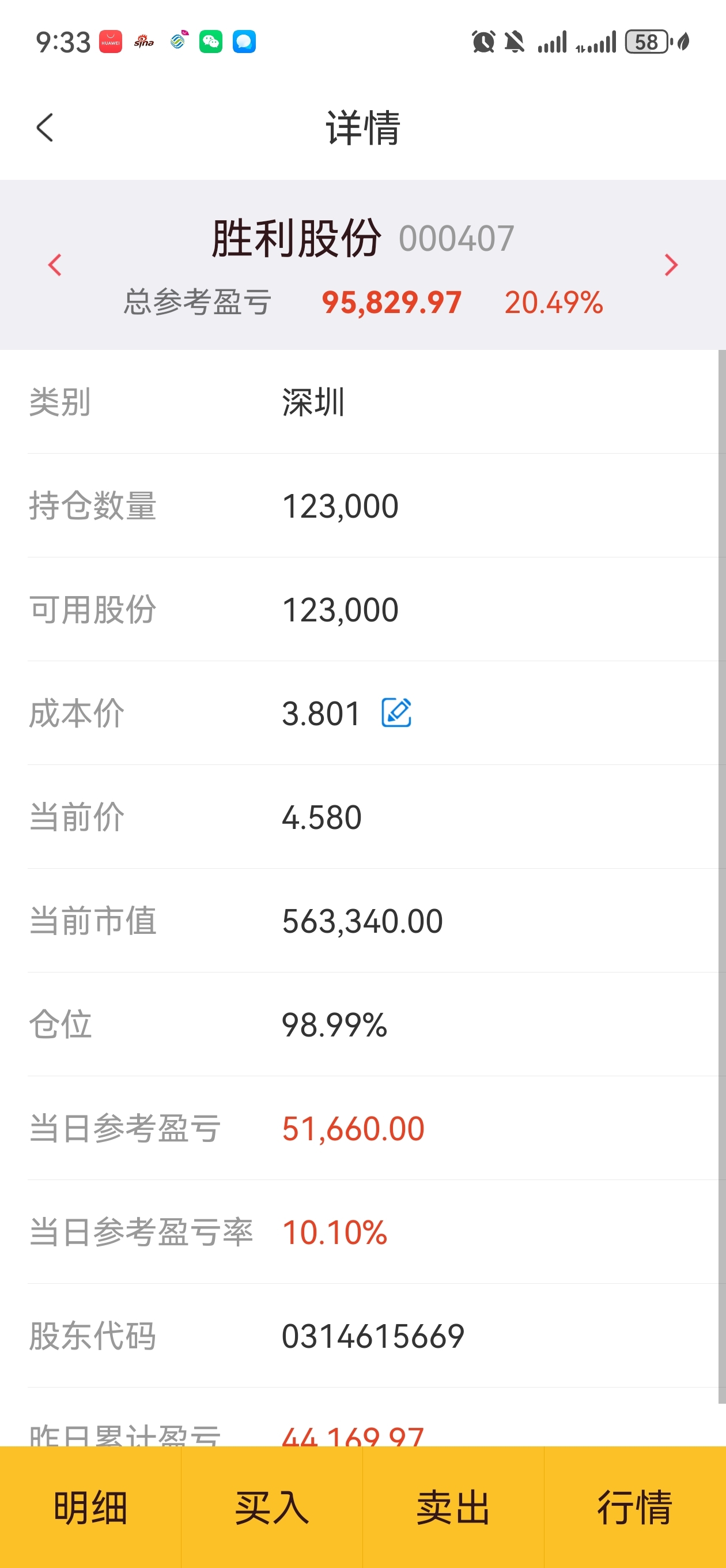 $胜利股份(SZ000407)$ 今天封住了,估计要5板起步了,感谢庄家