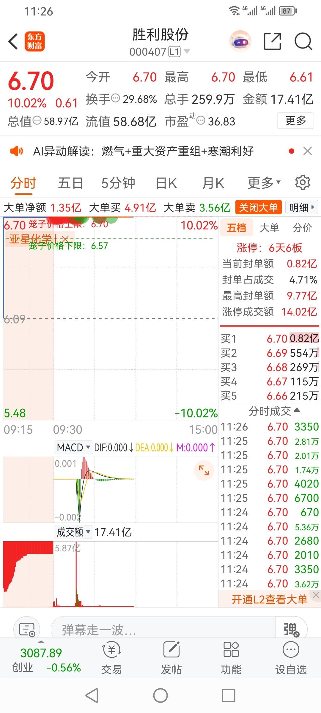 方军,今天操作股票胜利股份亚星化学。控制1成仓位,分批多次买进。