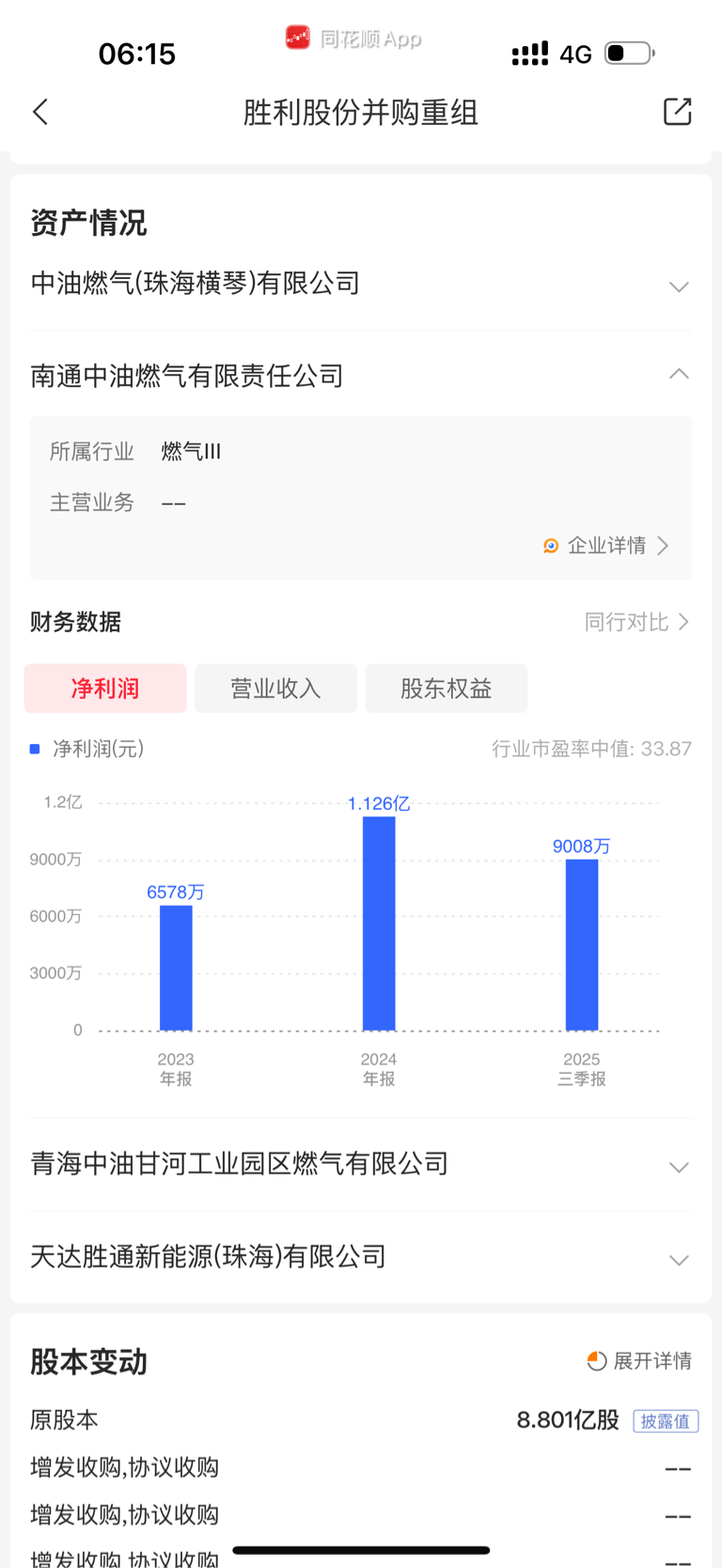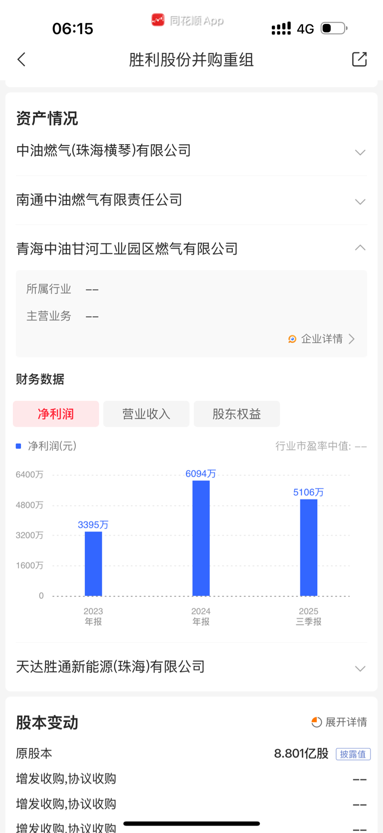 重大资产重组的4家公司2024年净利润3.8亿,比胜利股份2024年翻3倍,确实