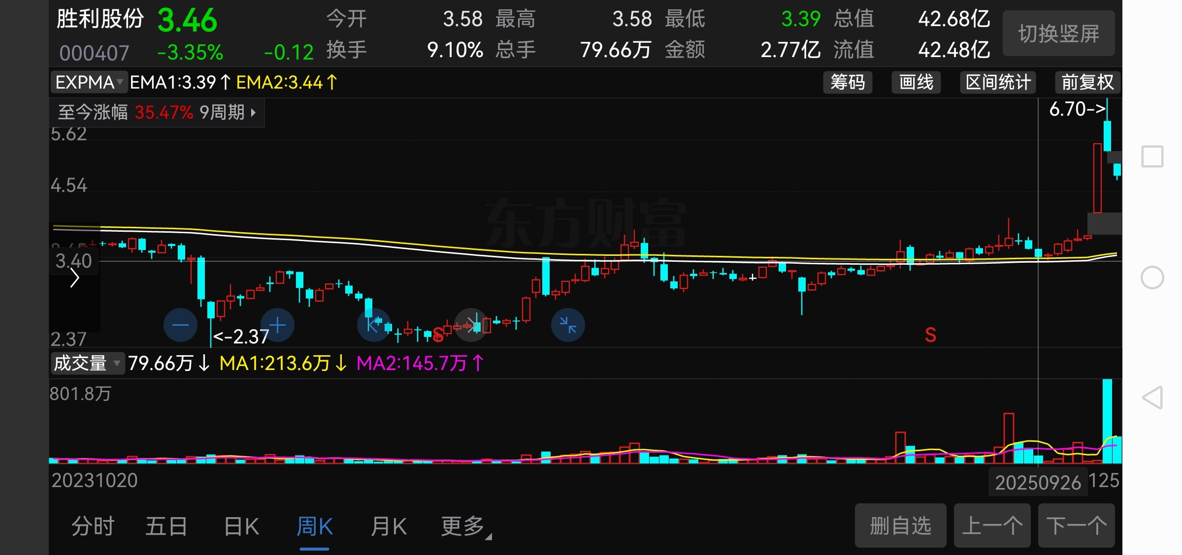 $胜利股份(SZ000407)$ 缺口箱体,5.37/3.79。底2.37最后支撑3.39。潜伏吃主升,打板吃杀跌。