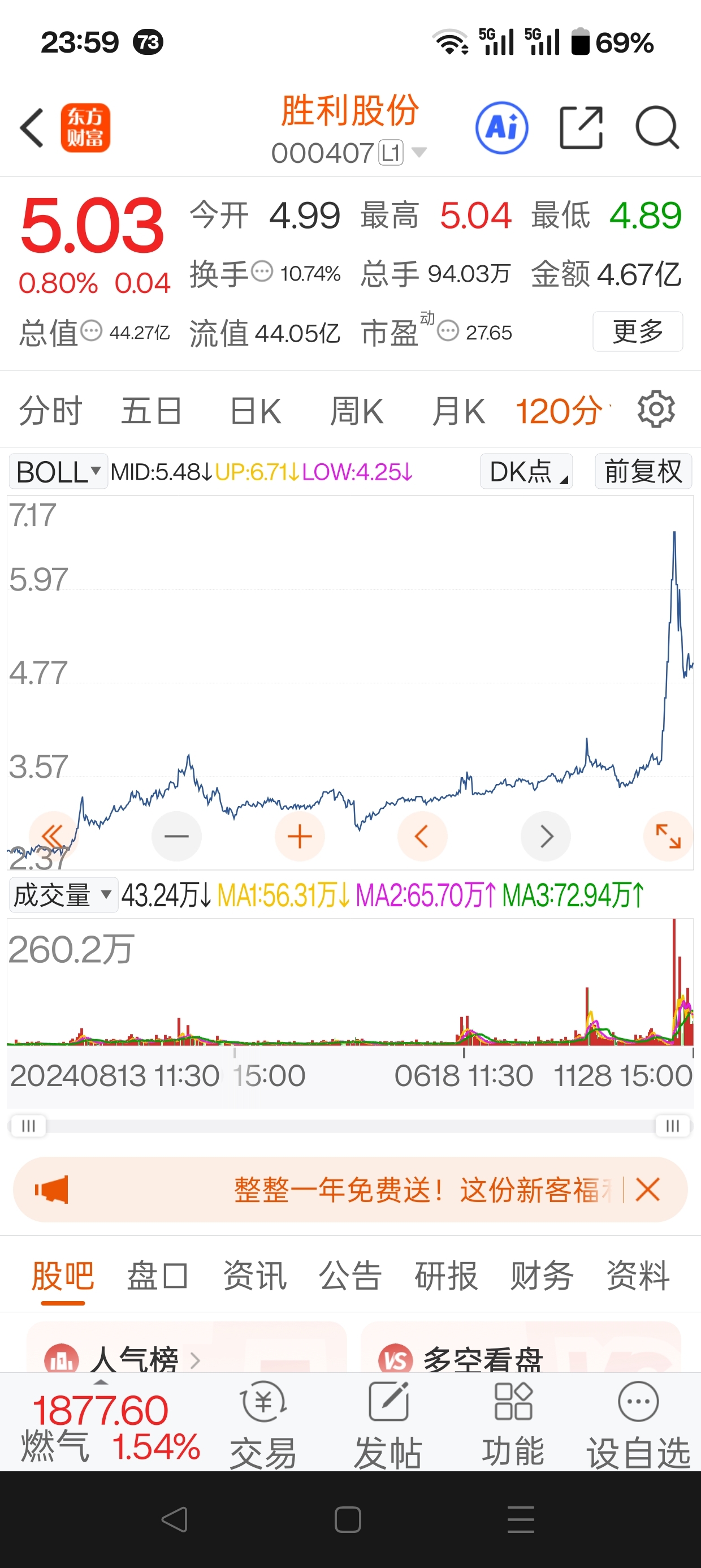 $胜利股份(SZ000407)$ 你们什么时候见过这样的高位跌下来,还能再一个月内涨上去的图?这种图跌下去的倒是见到过不少不啊。