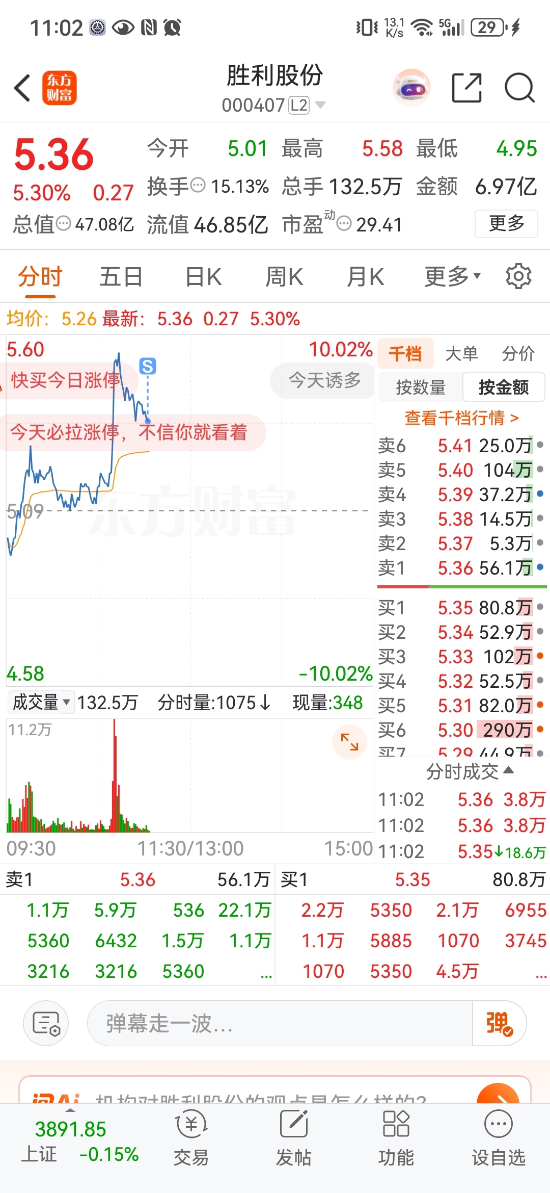 $胜利股份(SZ000407)$ 走了老板,可以涨停了