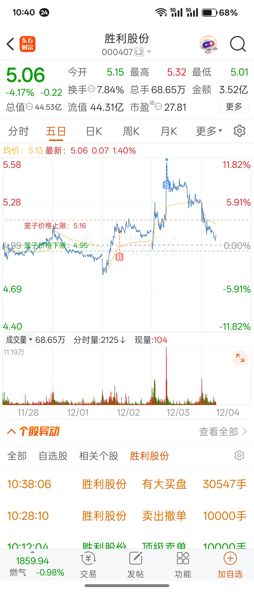 $胜利股份(SZ000407)$ 还好昨天跑的快