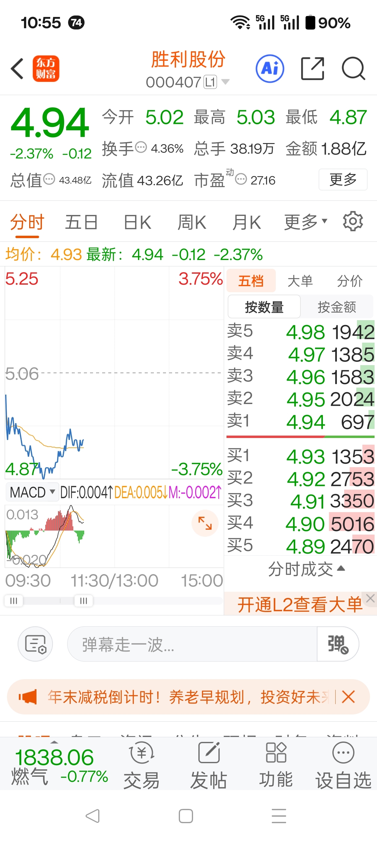 胜利股份,你用马丁战法,那是好用的。4.95买入