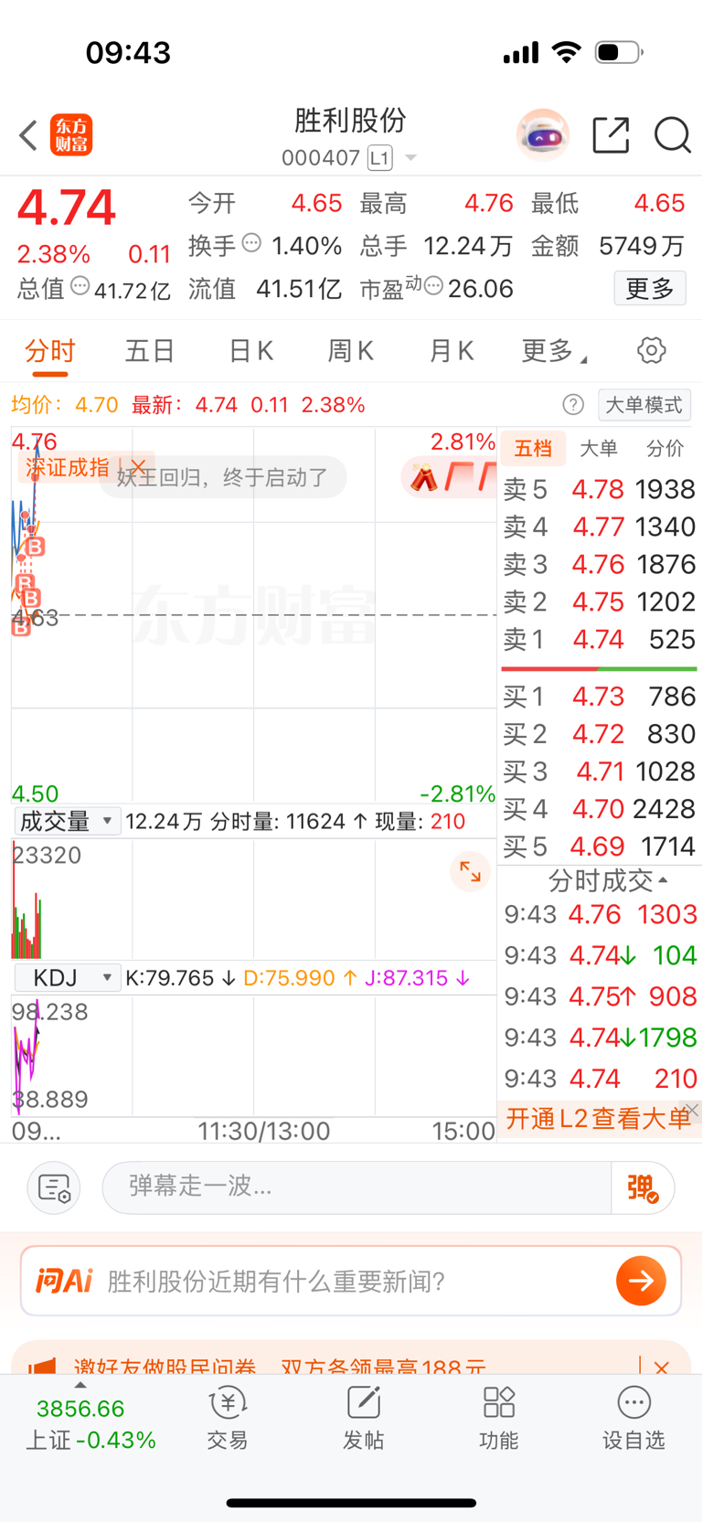 $胜利股份(SZ000407)$ 不知道今天追进是对是错