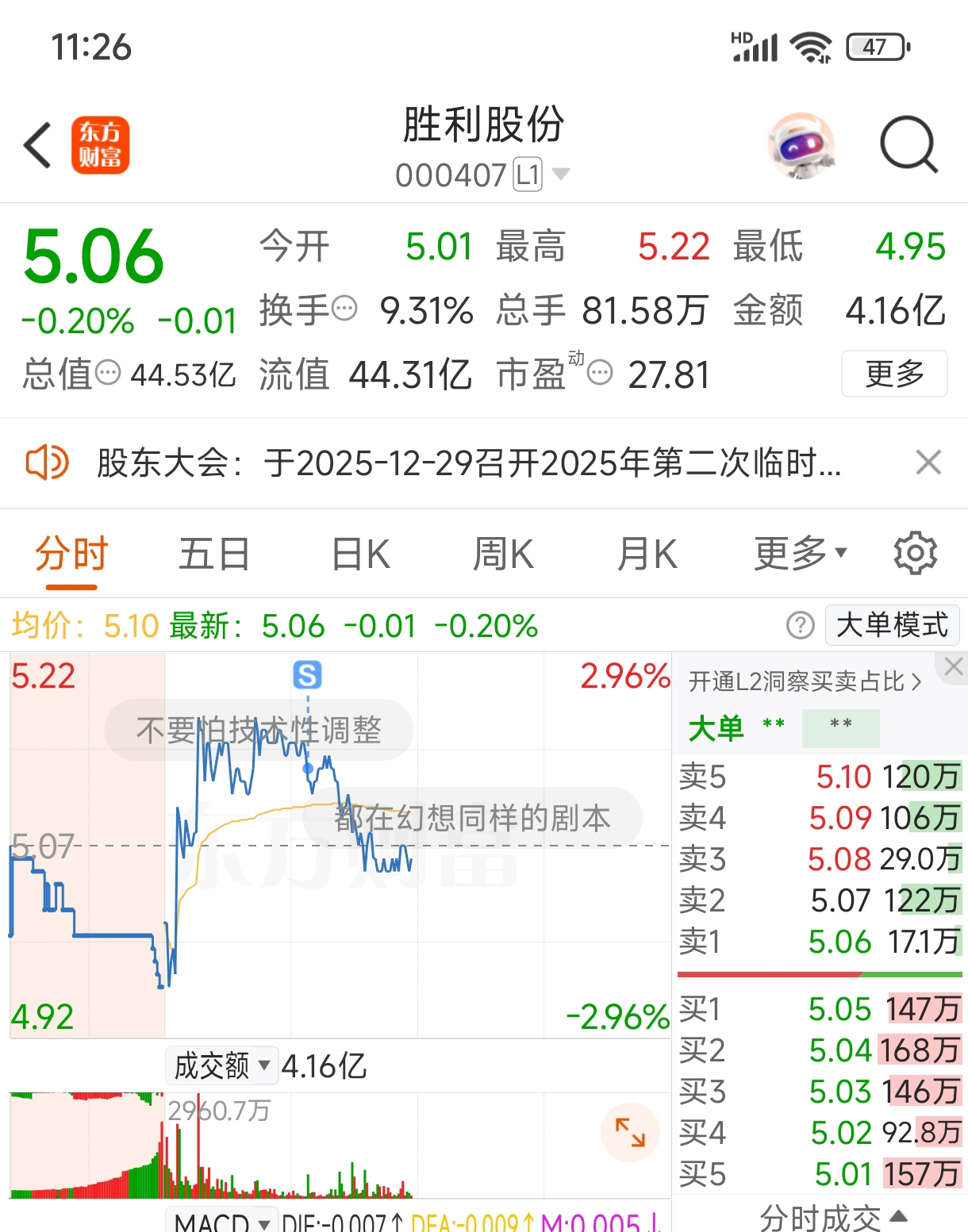 $胜利股份(SZ000407)$ 大胆作踢,别怕卖飞。