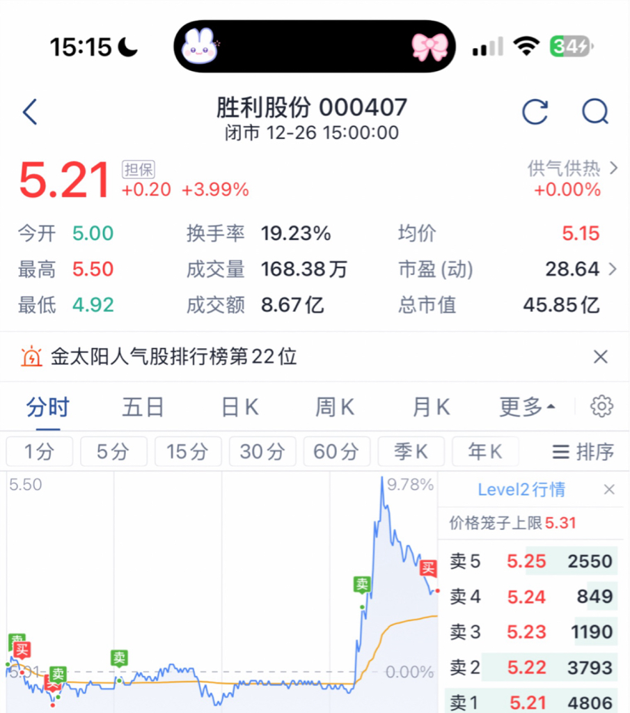 $胜利股份(SZ000407)$ 我反正基本满仓了,目前利润31万了,不看了。听天由命