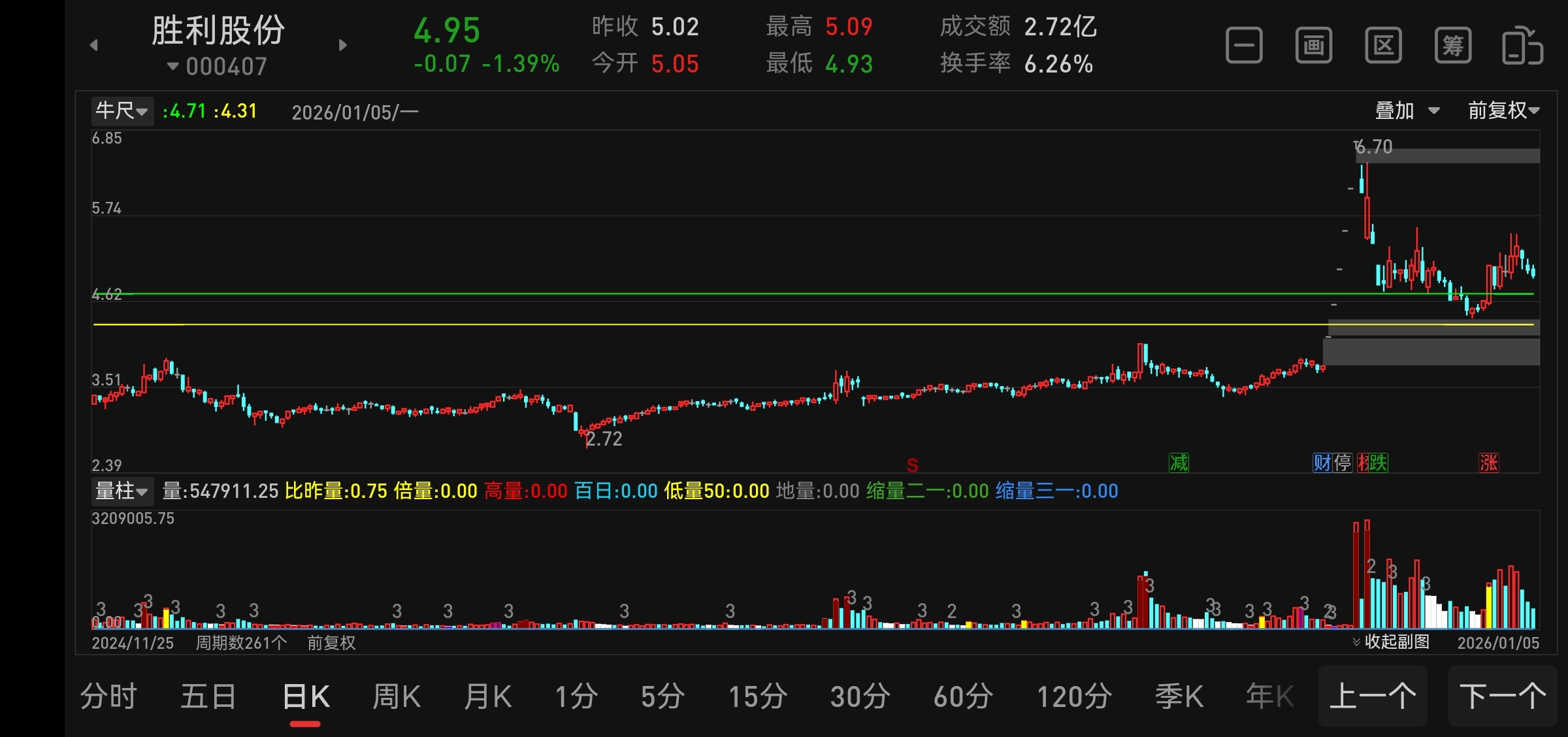$胜利股份(SZ000407)$ 无它,涨多了而已。