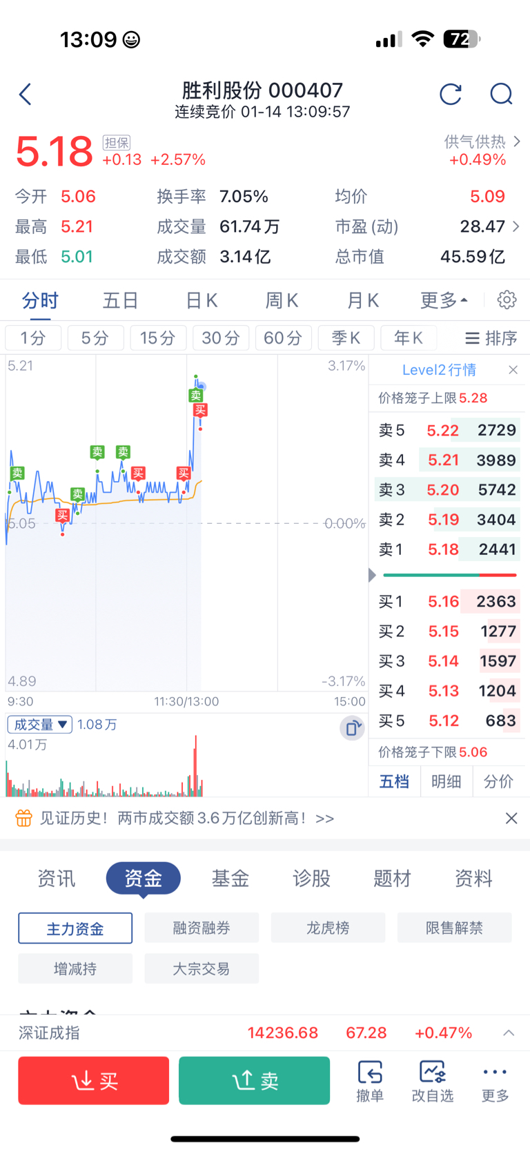 $胜利股份(SZ000407)$ 买入70万涨停