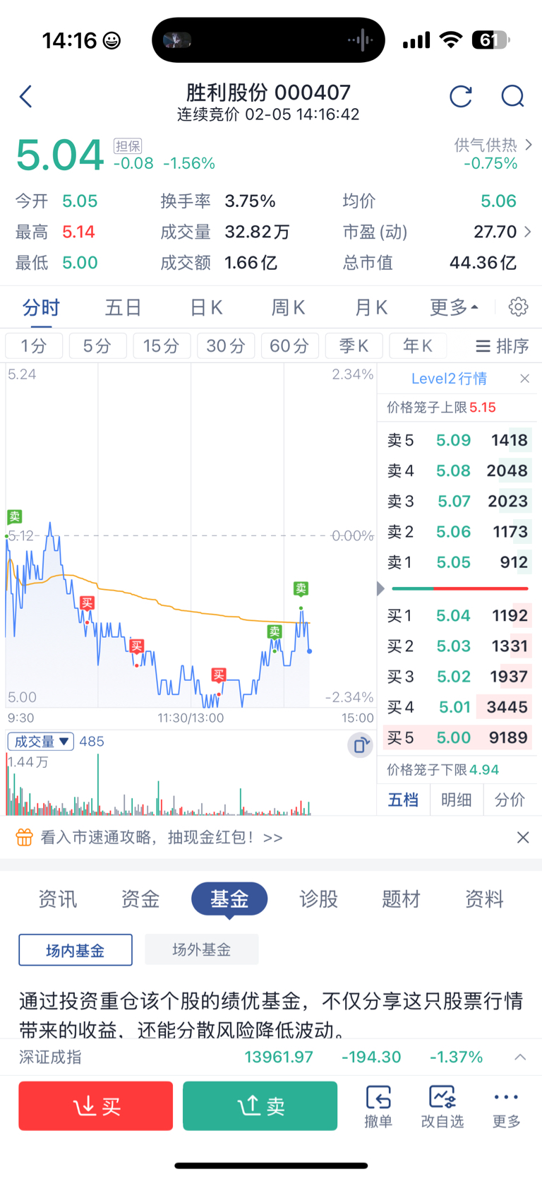 $胜利股份(SZ000407)$ 缩量下跌,尾盘再看要不要再入点