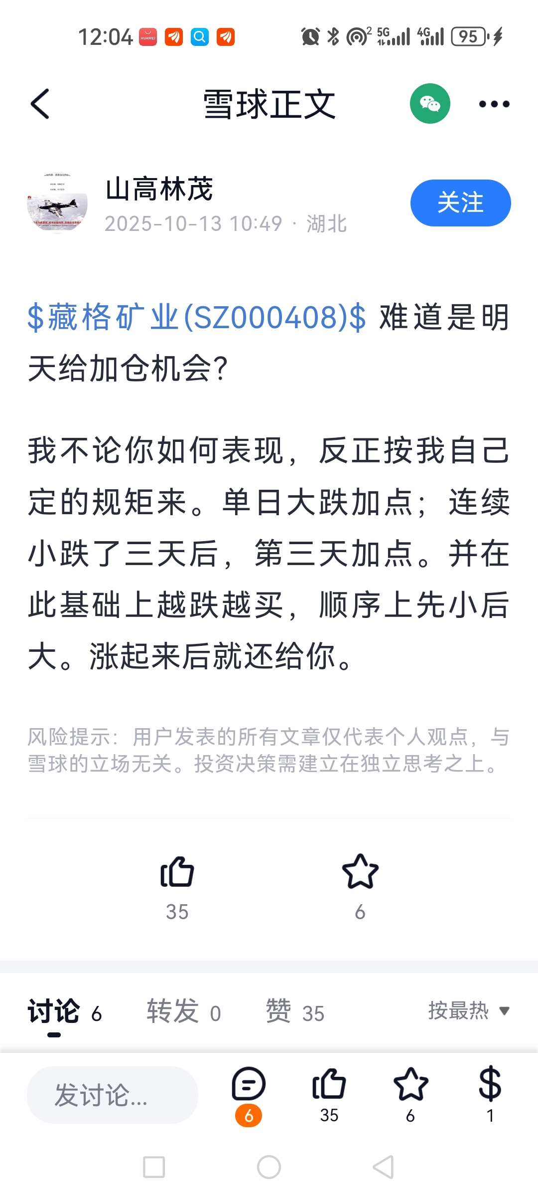高手来了,看看这个半吊子的股神是怎样做股票的?山鸡你干脆把藏格买完了吧,反正你有