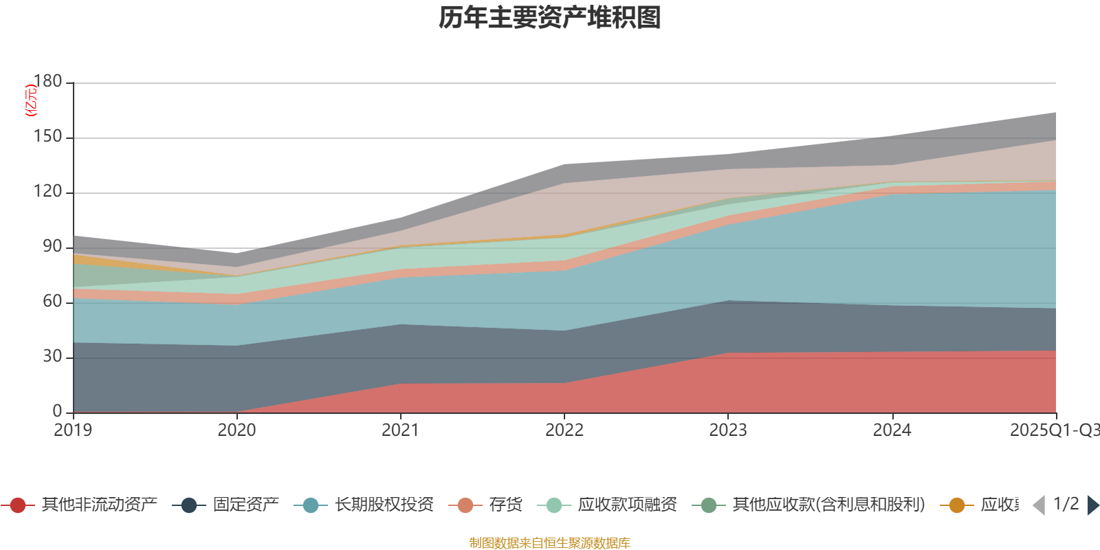 资产重大变化方面,截至2025年三季度末,公司货币资金较上年末增加146.17%,占公司总资产比重上升7.47个百分点;固定资产较上年末减少9.23%,占公司总资产比重下降2.74个百分点;债权投资占公司总资产的1.45%,上年末为0;其他流动资产较上年末减少72.07%,占公司总资产比重下降1.45个百分点。