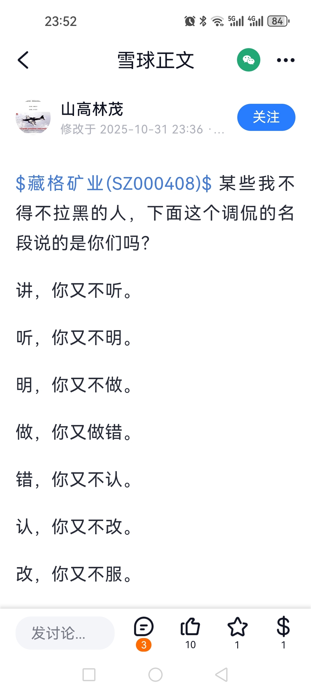 $藏格矿业(SZ000408)$ 山鸡你凭什么人家要听你的?你有证券行业的从业证吗?