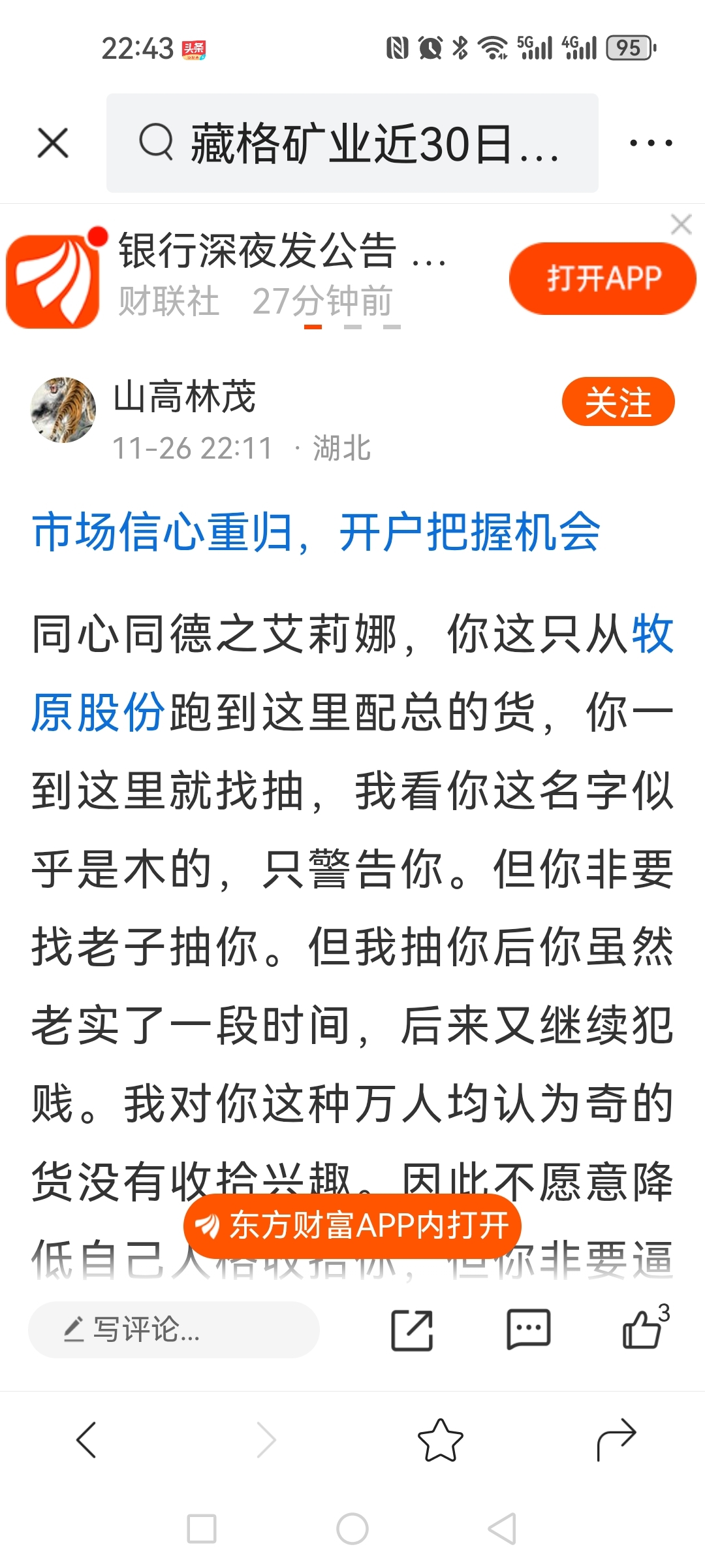 温馨提示: 1.根据《证券法》规定,禁止编造、传播虚假信息或者误导性信息,扰乱证券市场;2.用户在本社区发表的所有资料、言论等仅代表个人观点,与本网站立场无关,不对您构成任何投资建议。用户应基于自己的独立判断,自行决定证券投资并承担相应风险。《东方财富社区管理规定》