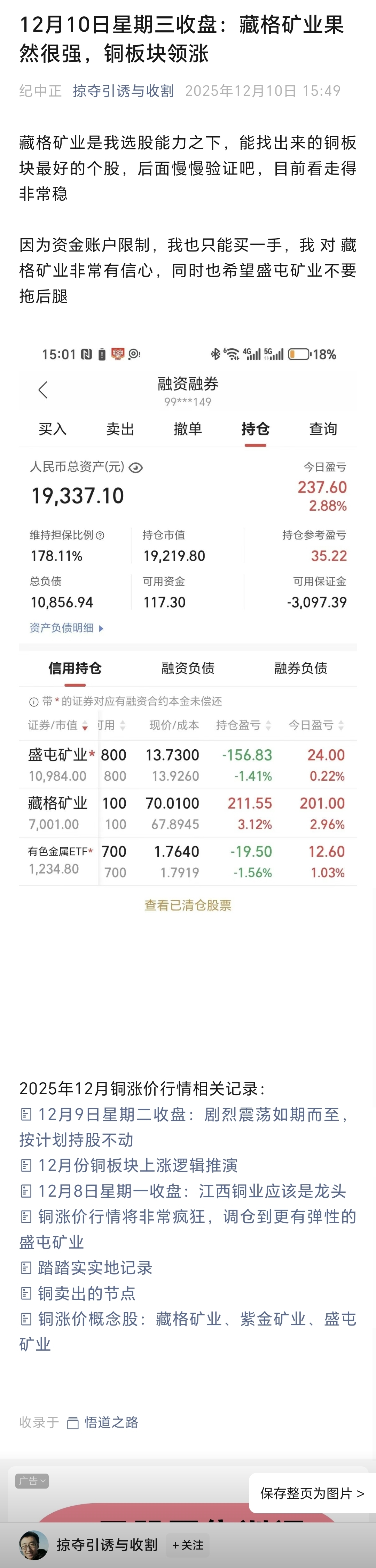 藏格矿业涨得不错,没有选错,藏格矿业和盛屯矿业继续持股不动,也看好江西铜业