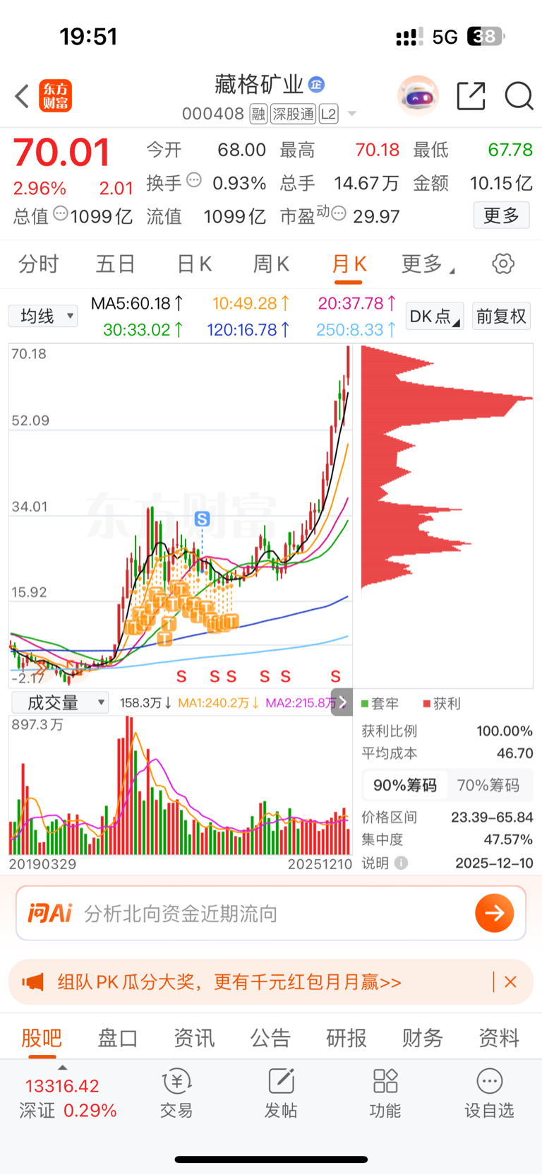 $藏格矿业(SZ000408)$ 拿了2年没赚钱走的、现在一看亏大发了、连续涨12个月