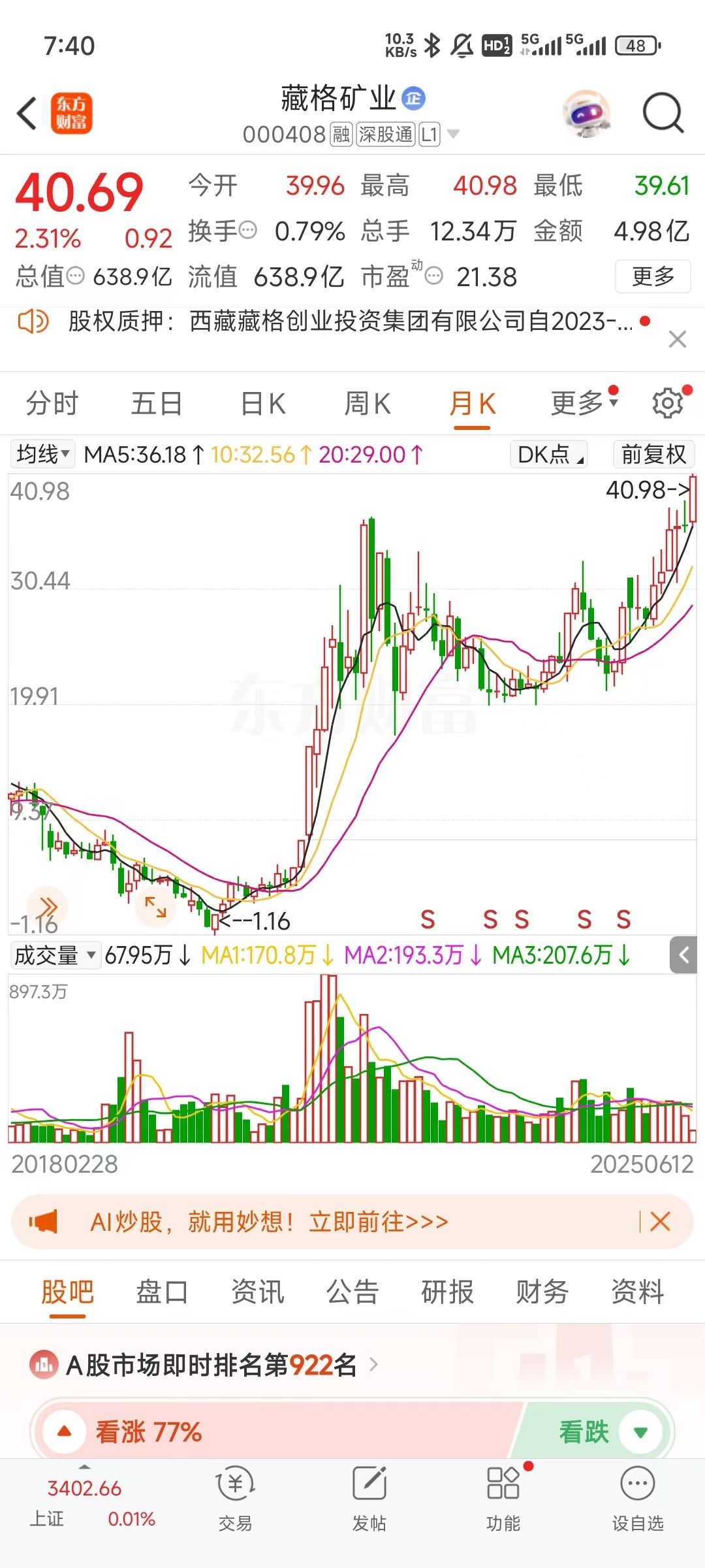 $藏格矿业(SZ000408)$ 唉,没买。。。