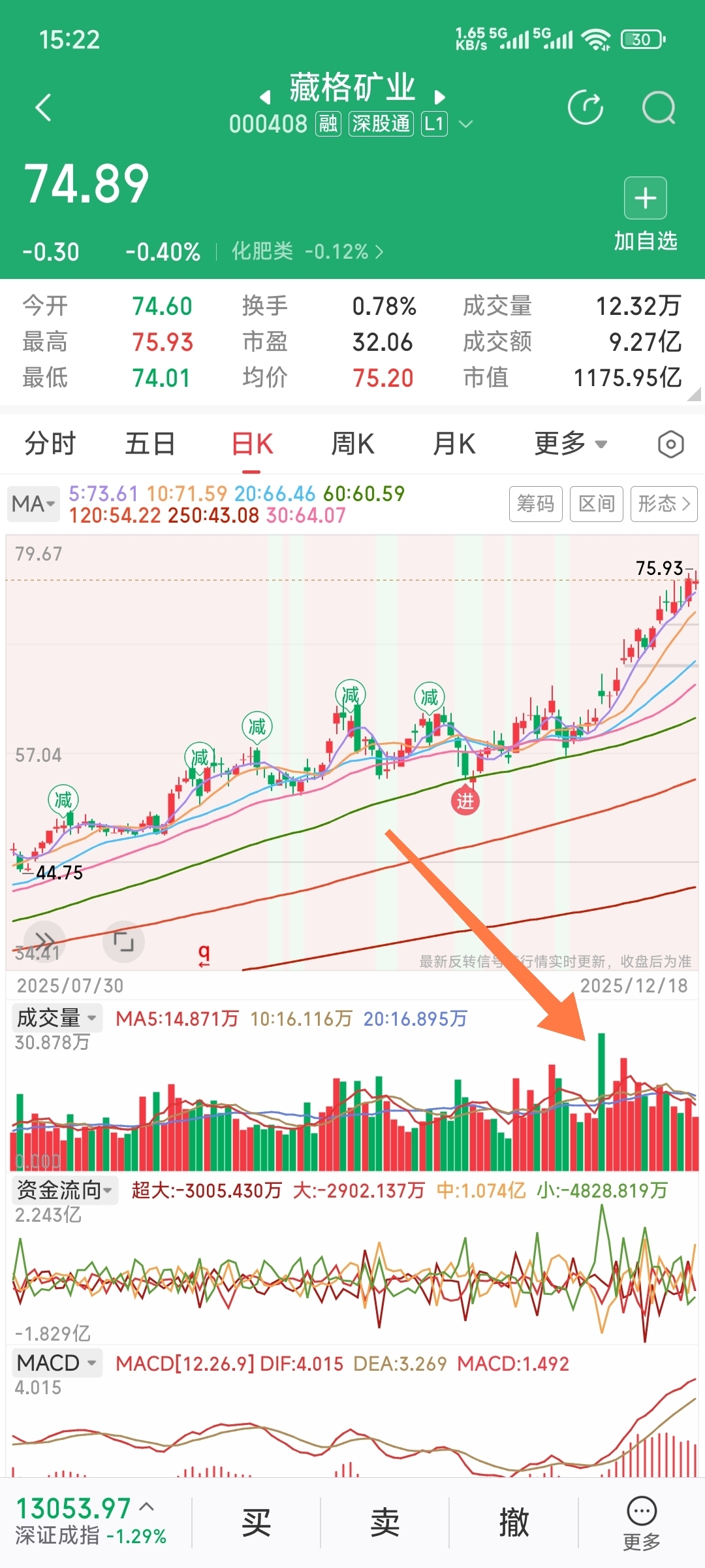 $藏格矿业(SZ000408)$ 主力不按套路出牌,12-1那天洗掉很多人,很多人以为到上方支撑位要回调了就走了,看下方那个大绿柱