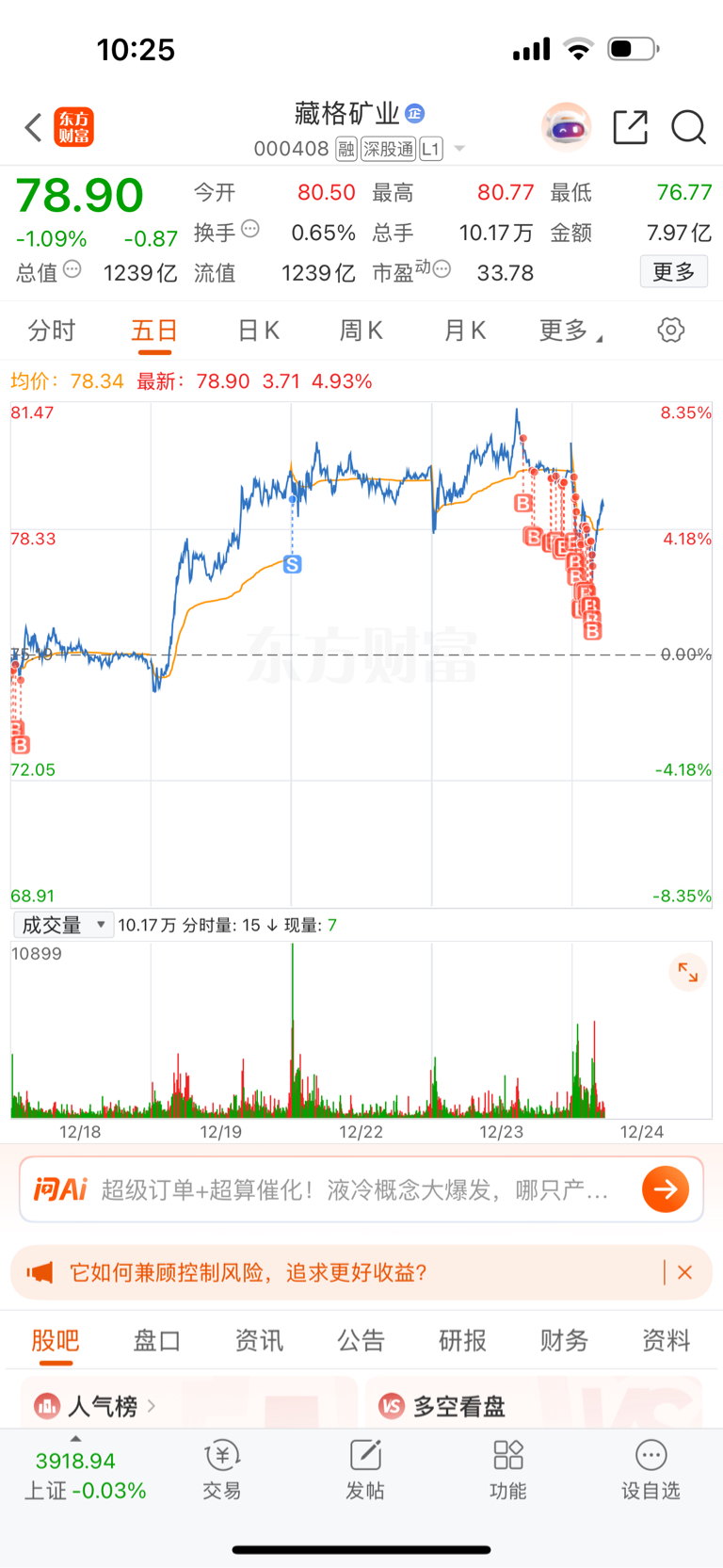$藏格矿业(SZ000408)$ 今天玩的就是心跳