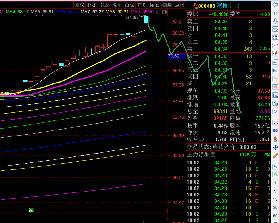 藏格矿业今天87元已见这波反弹大顶,后面开启补跌之路大概率