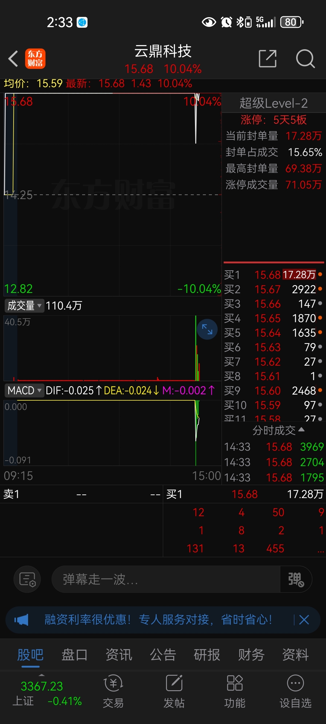 $云鼎科技(SZ000409)$ 板上成交了71W手