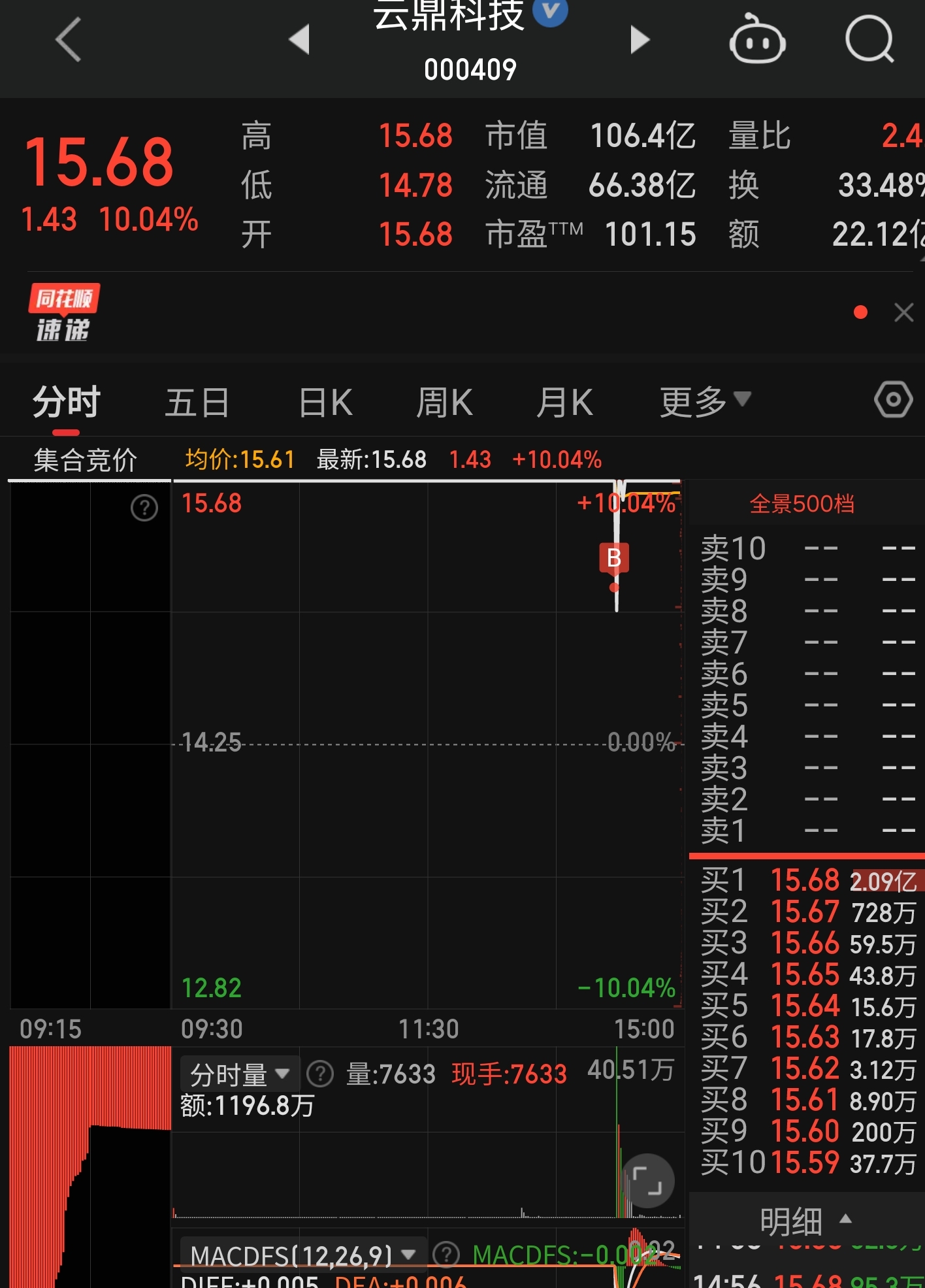 $云鼎科技(SZ000409)$ 每次都是施舍给我,才有机会拿到