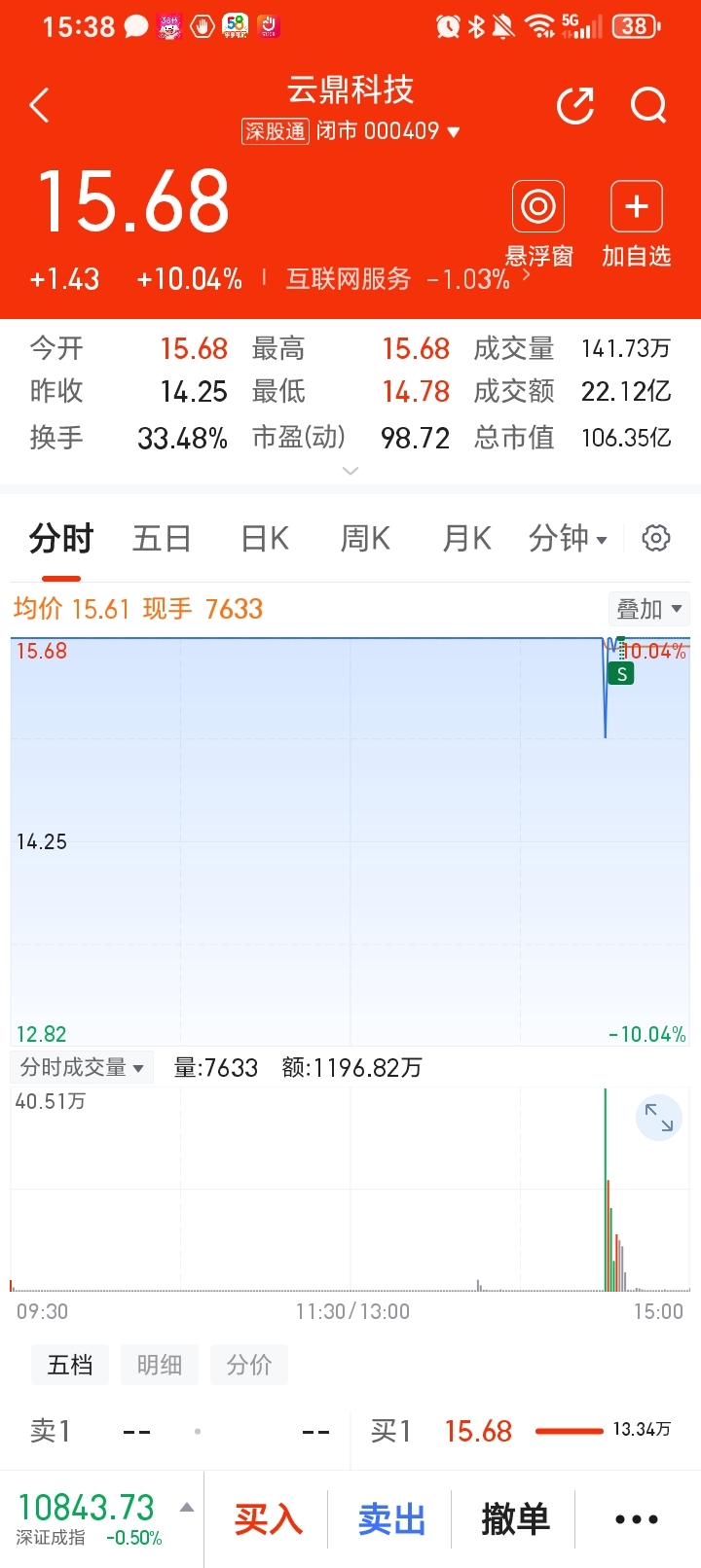 $云鼎科技(SZ000409)$ 我也减了,感觉卖错,今天提前分岐,周一就安全一点,