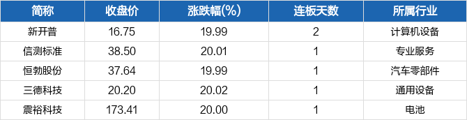 科创板创业板涨停个股一览
