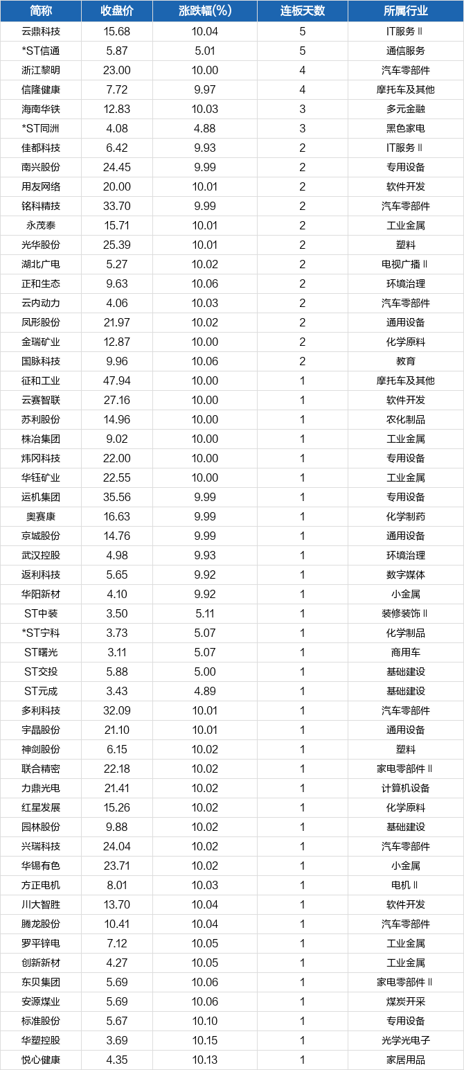 主板涨停个股一览