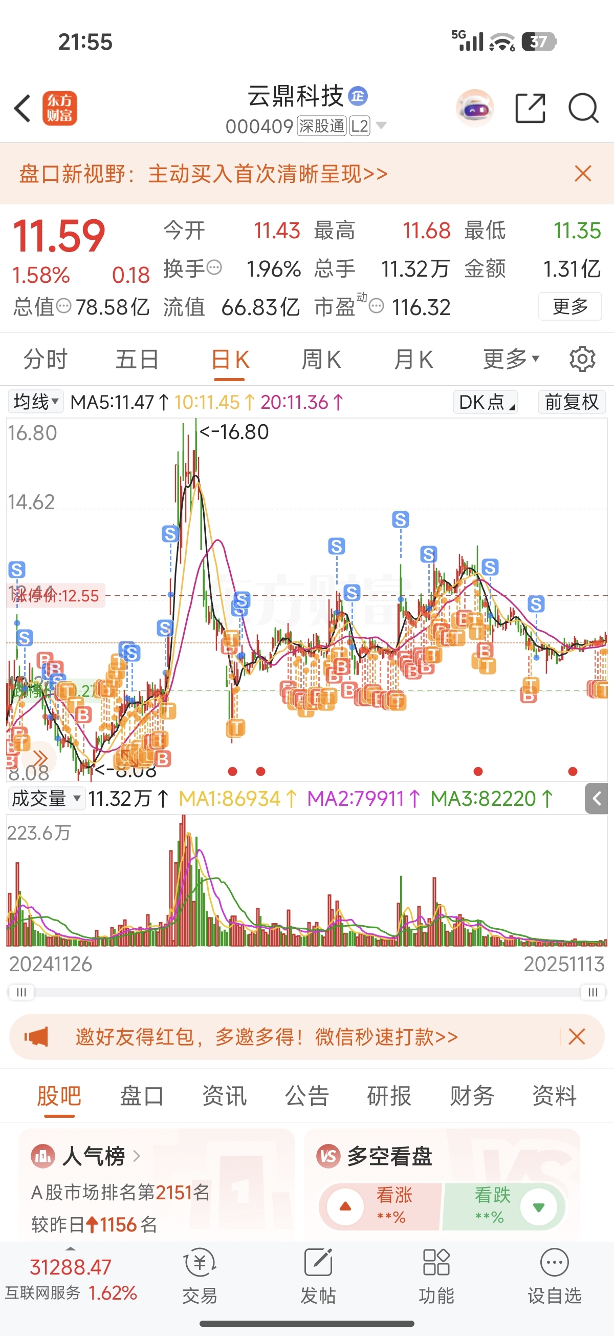 $云鼎科技(SZ000409)$ 我回来了