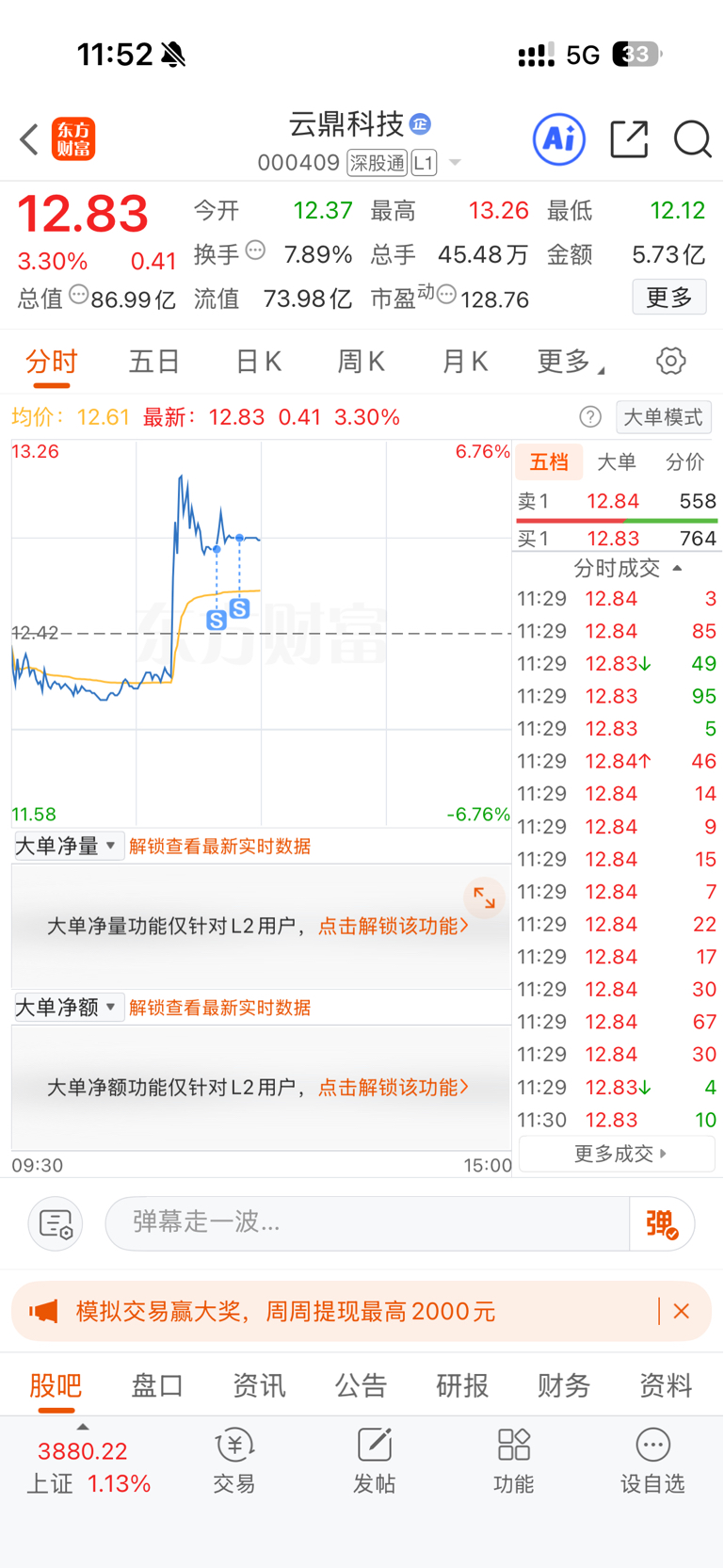 $云鼎科技(SZ000409)$ 下午感觉要涨停啦,卖飞了感觉