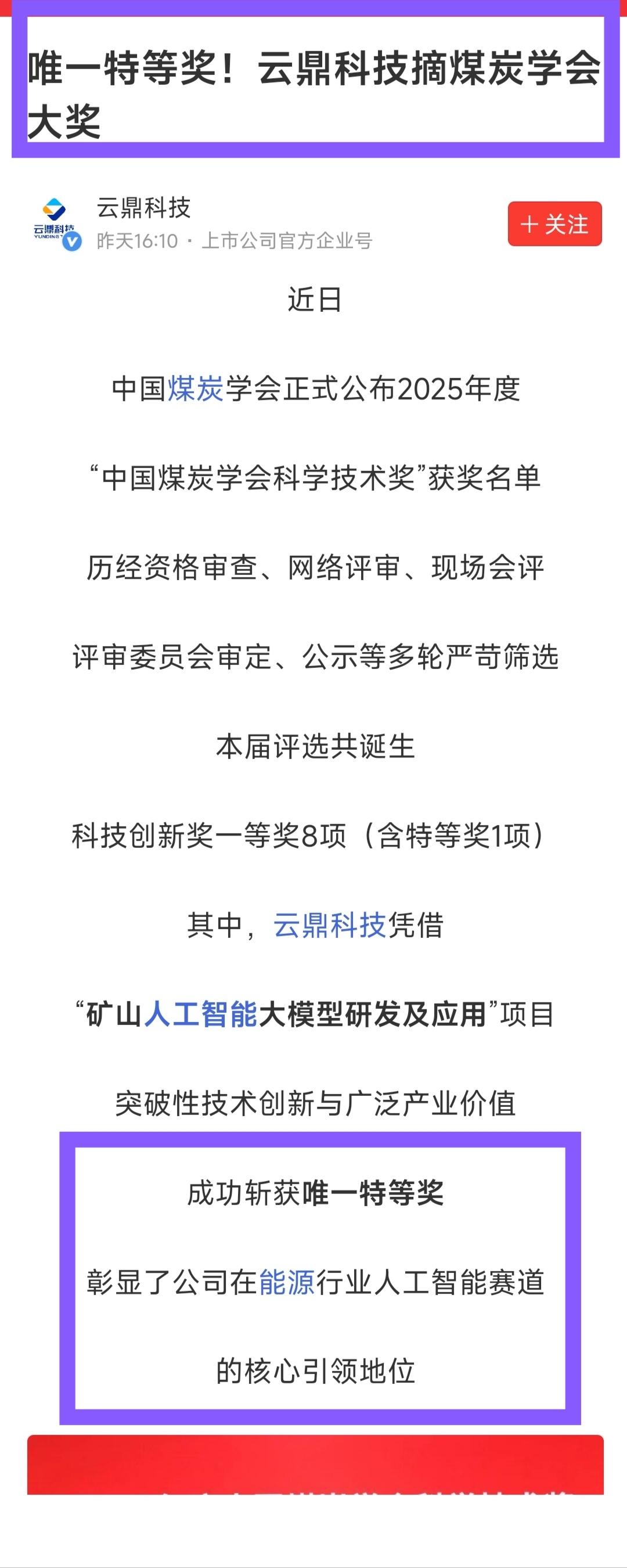$云鼎科技(SZ000409)$ 老表们谁知道这个特等奖的含金量