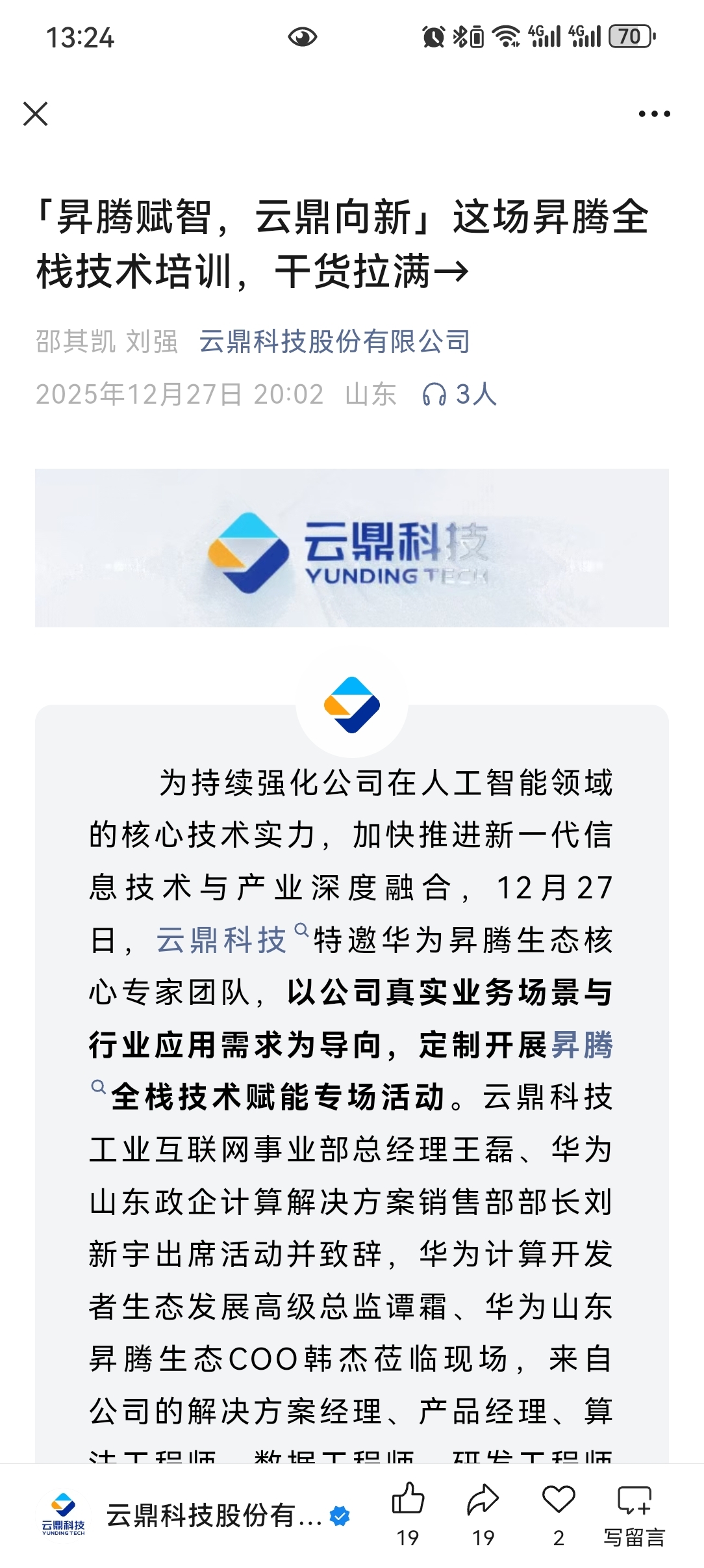 $云鼎科技(SZ000409)$ 华为昇腾概念