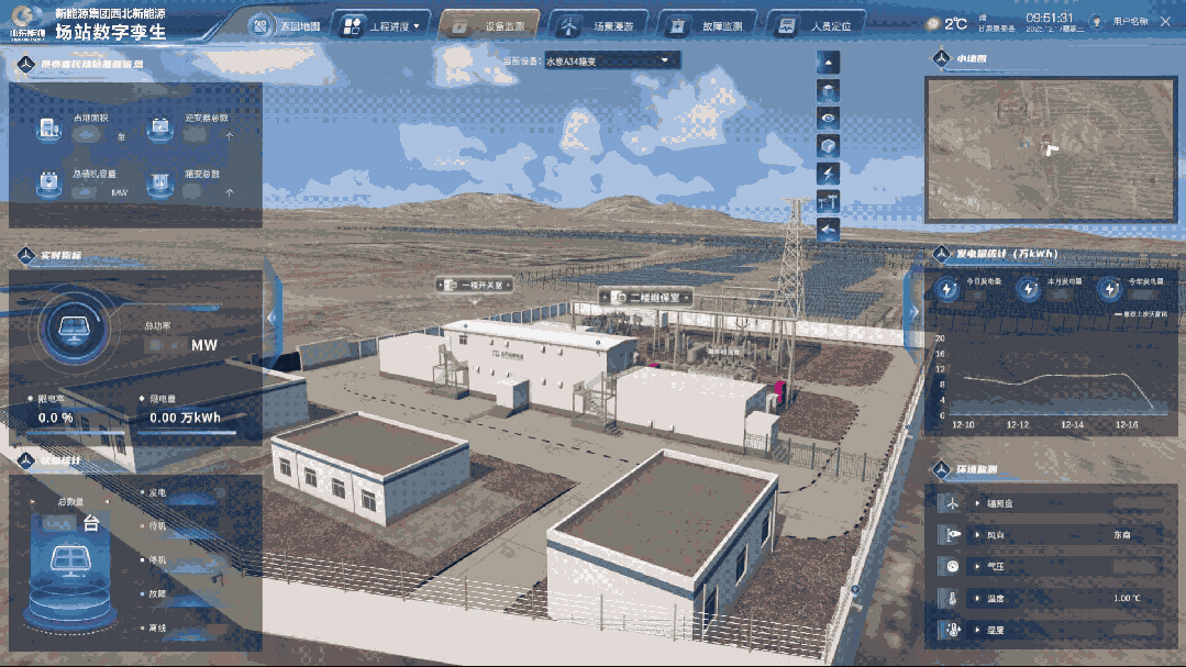 数字孪生系统构建“真孪生”运维支撑体系,对场站设备、地形地貌进行1:1数字化复刻,可精准模拟设备运行工况、推演故障处置流程,为运维方案优化提供沉浸式虚拟场景。借助这一技术,维检人员能够快速定位故障、减轻作业强度,大幅提升现场作业效率。