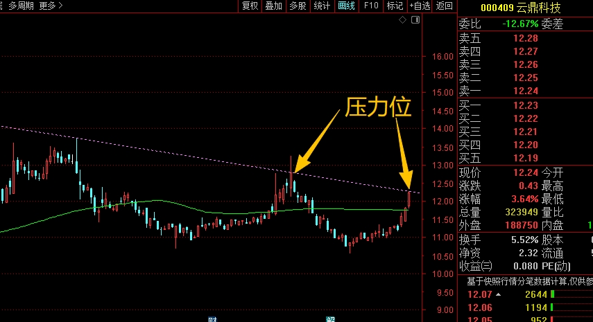 $云鼎科技(SZ000409)$ 中期趋势不算强,中间走得比较折腾,节奏上不太好把握。短线来看,接下来主要是关注头上趋势线能否突破并且站稳,能的话就比较好看了,可以考虑打开上升空间;如果突破未遂,就要注意短线的回落调整风险,特别是脚底大均线11.75位置不能有效跌破,不然就需要大幅控制仓位应对破位风险了。#炒股日记# #收盘点评#