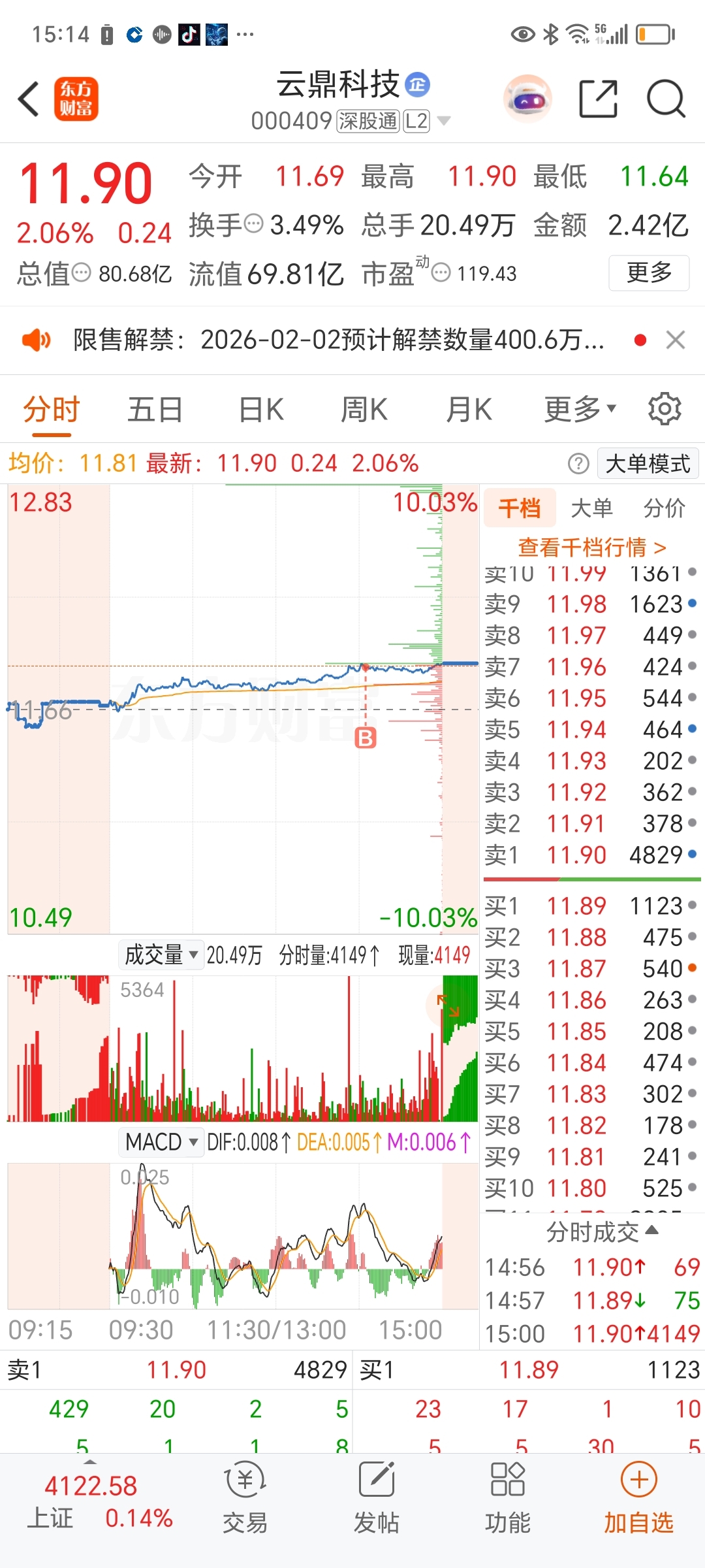 $云鼎科技(SZ000409)$ 这旮瘩上车了