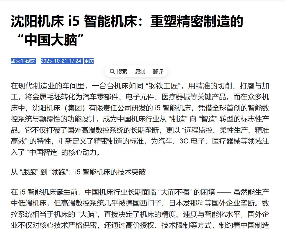 沈阳机床 i5 智能机床:重塑精密制造的 “中国大脑”