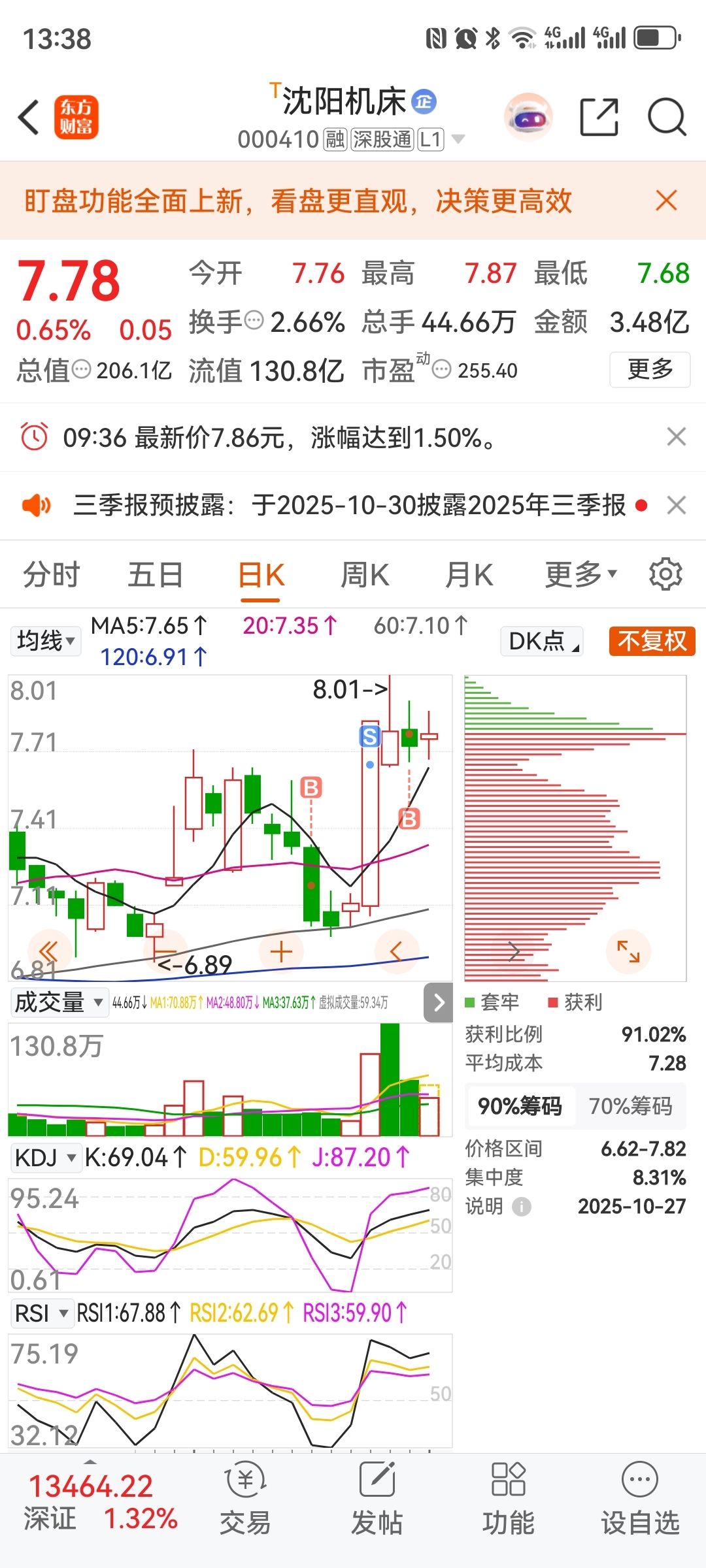 $沈阳机床(SZ000410)$ 现在是涨停首板后的横盘整理阶段,符合首板抓主升浪战法,只要收盘能站上7.85,上涨空间就被打开,目前压力位7.85,支撑位7.66,再等两天,这个价位不会一直横盘的,要么上去,要么下来。