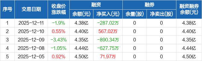 沈阳机床:融资净偿还287.02万元,融资余额4.38亿元(12-11)