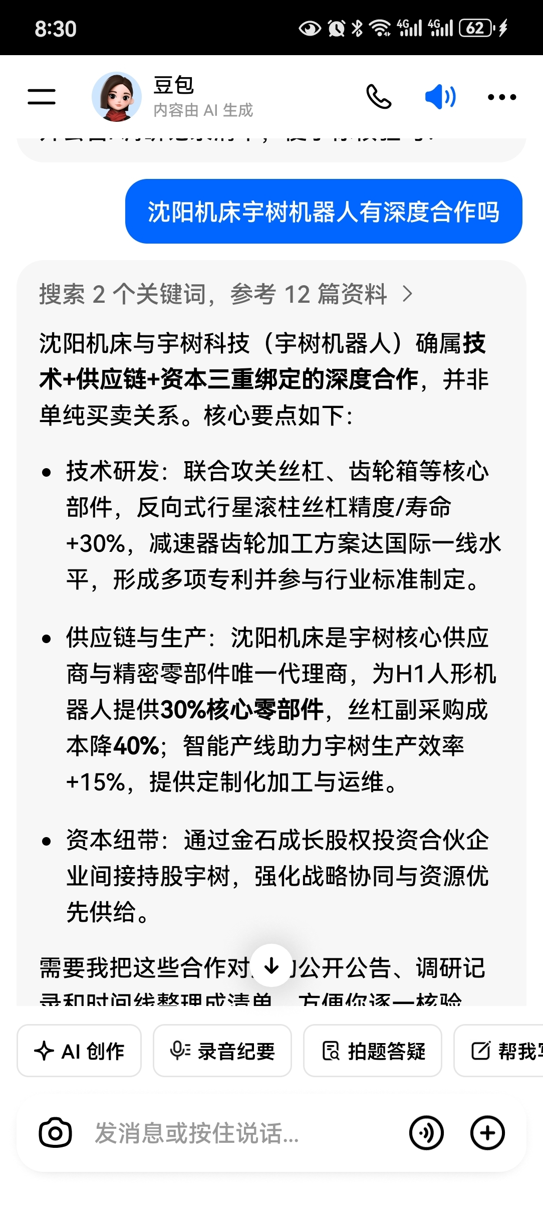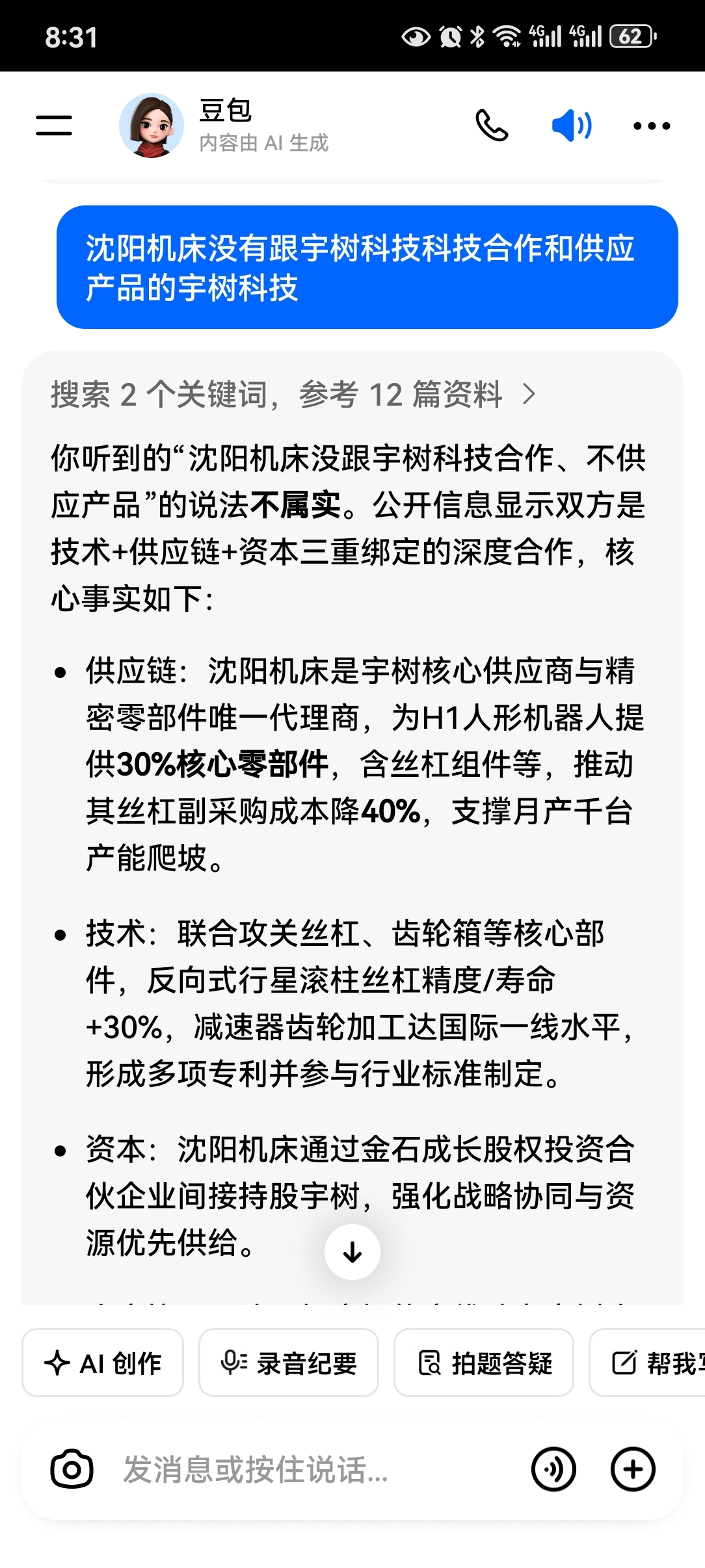 大家聊聊沈阳机床到底有没有供应机器人配件给宇树科技