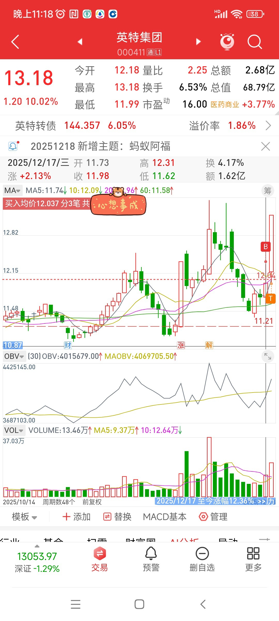 2025.12.18.集合竞价买入,涨停抛光旧仓。