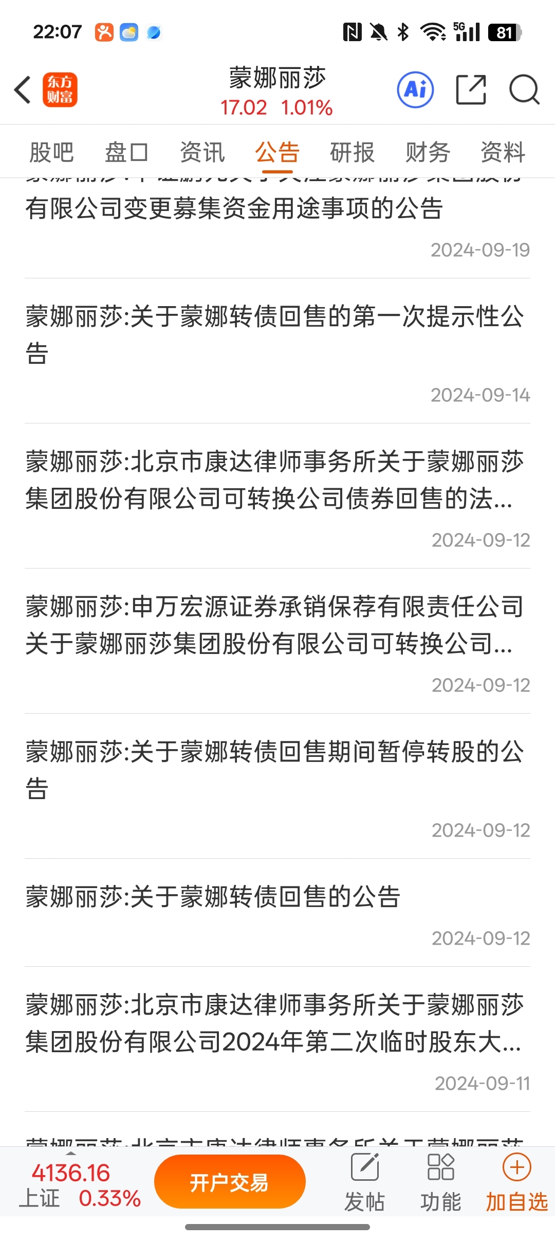 你们看下2024年9月12号蒙娜丽莎的转股后期是怎么走的,欢迎大家说说建议?