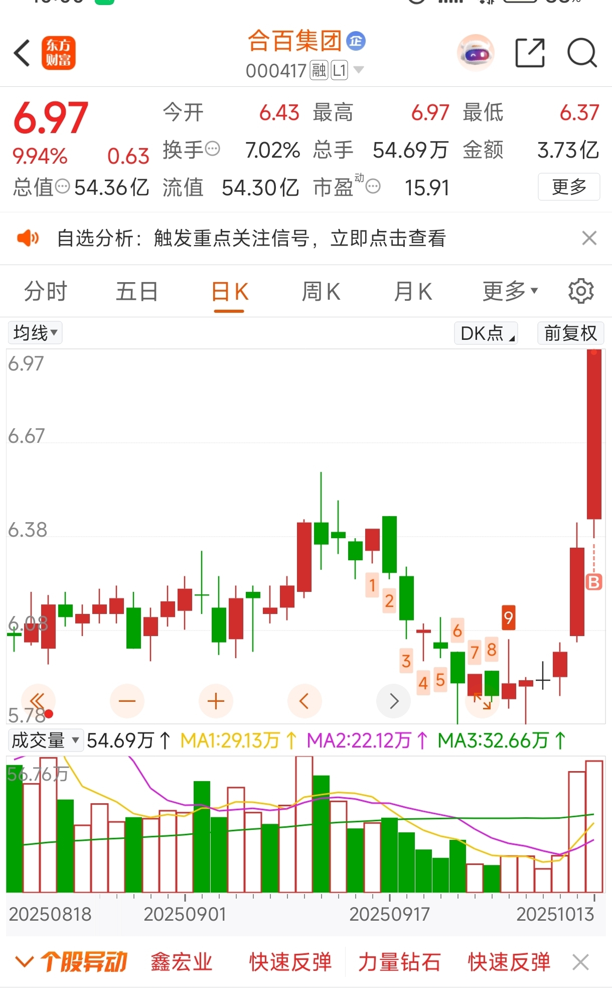 $合百集团(SZ000417)$ 黄金坑.倍量过顶,干就完事了