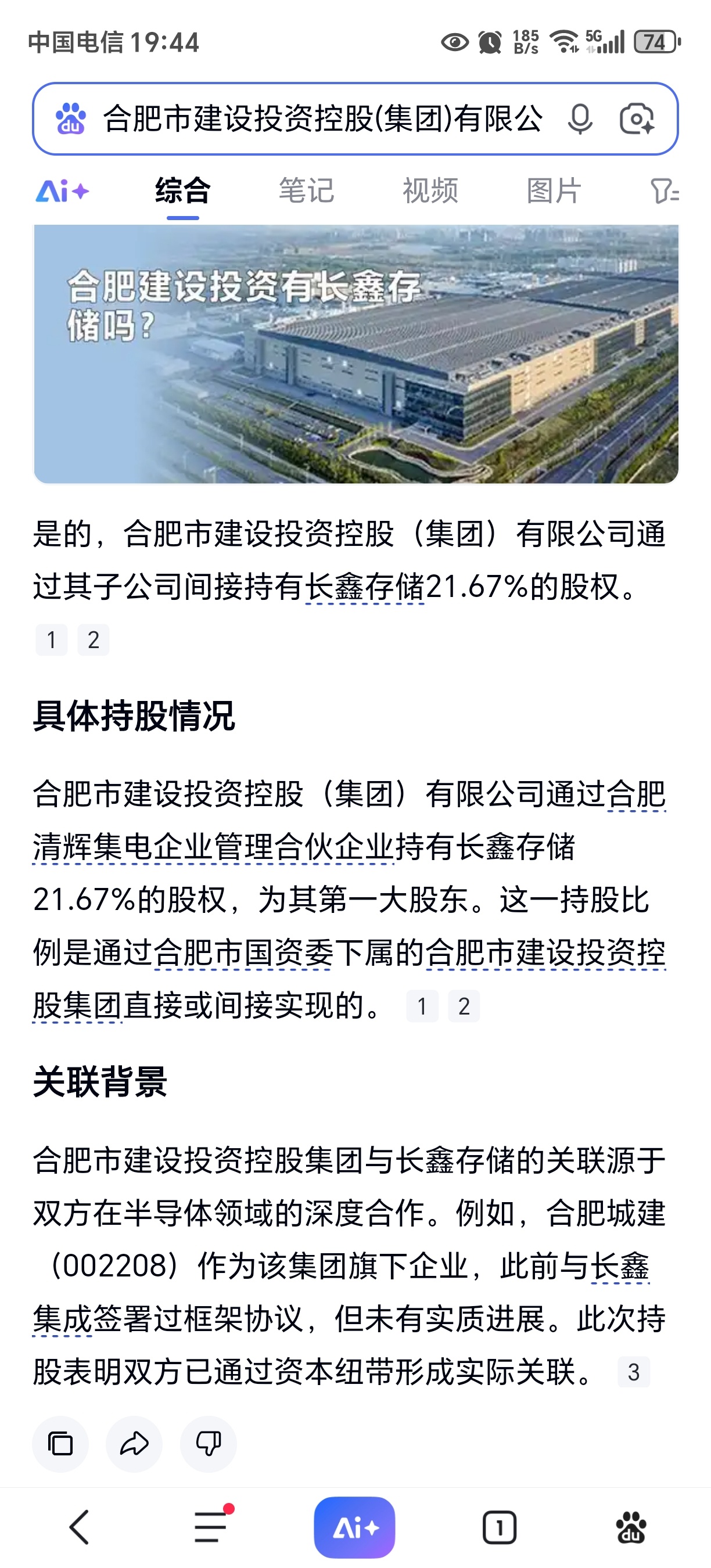 查了一下,合百集团第一大股东持有长鑫存储的股权见下图。又知是否属实,特抛砖引玉,