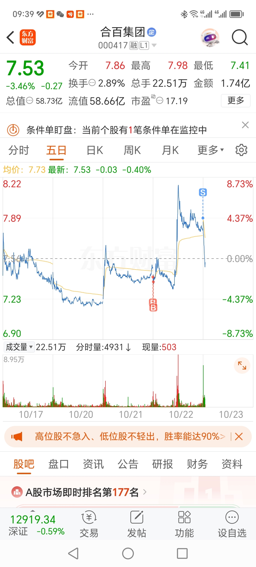 $合百集团(SZ000417)$ 居然给高开出逃的机会,主力葫芦里买的是什么药?
