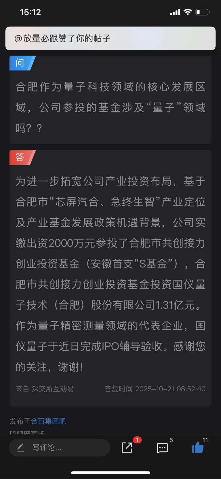 $合百集团(SZ000417)$ 大家把量子科技概念加上,长鑫带不动,国仪量子黑科技再带不动,不信邪了