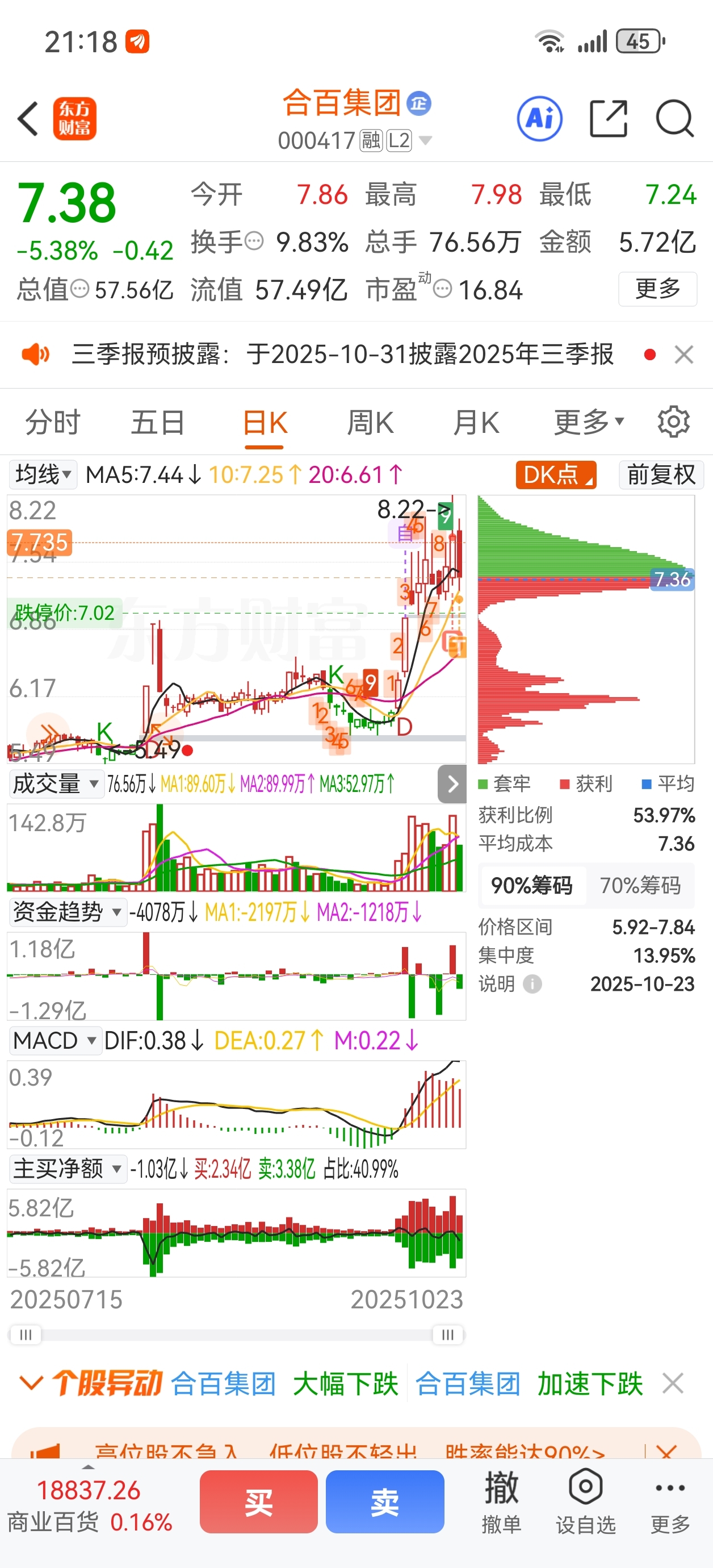 $合百集团(SZ000417)$ 昨天买的,今天除了竞价挂跑不掉。季报有雷?